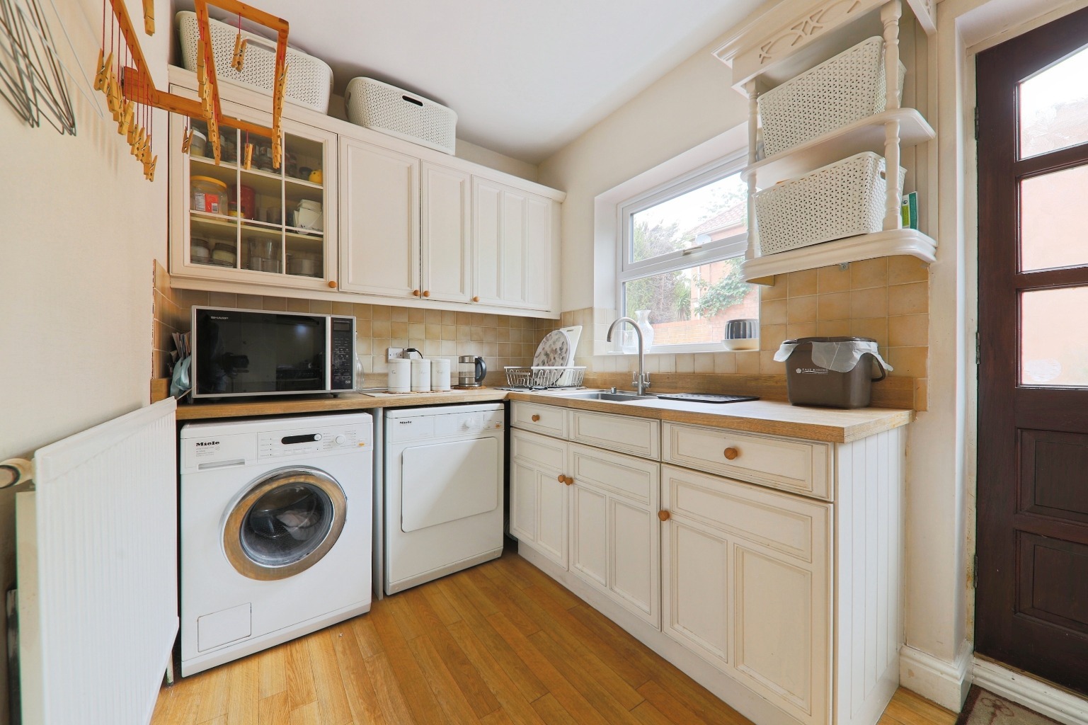 Outside, the garden is hedged providing a private space, and wraps around the house, being easy to maintain with areas for entertaining and relaxing. The gates are fitted with a privacy screen offering further privacy and there’s plenty of room for parking, too.