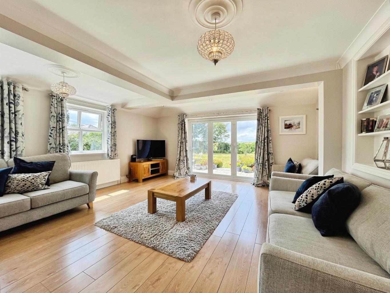 Set on a generous garden plot of approximately one third of an acre, the property enjoys open countryside views to the rear, offering both privacy and breathtaking panoramas.