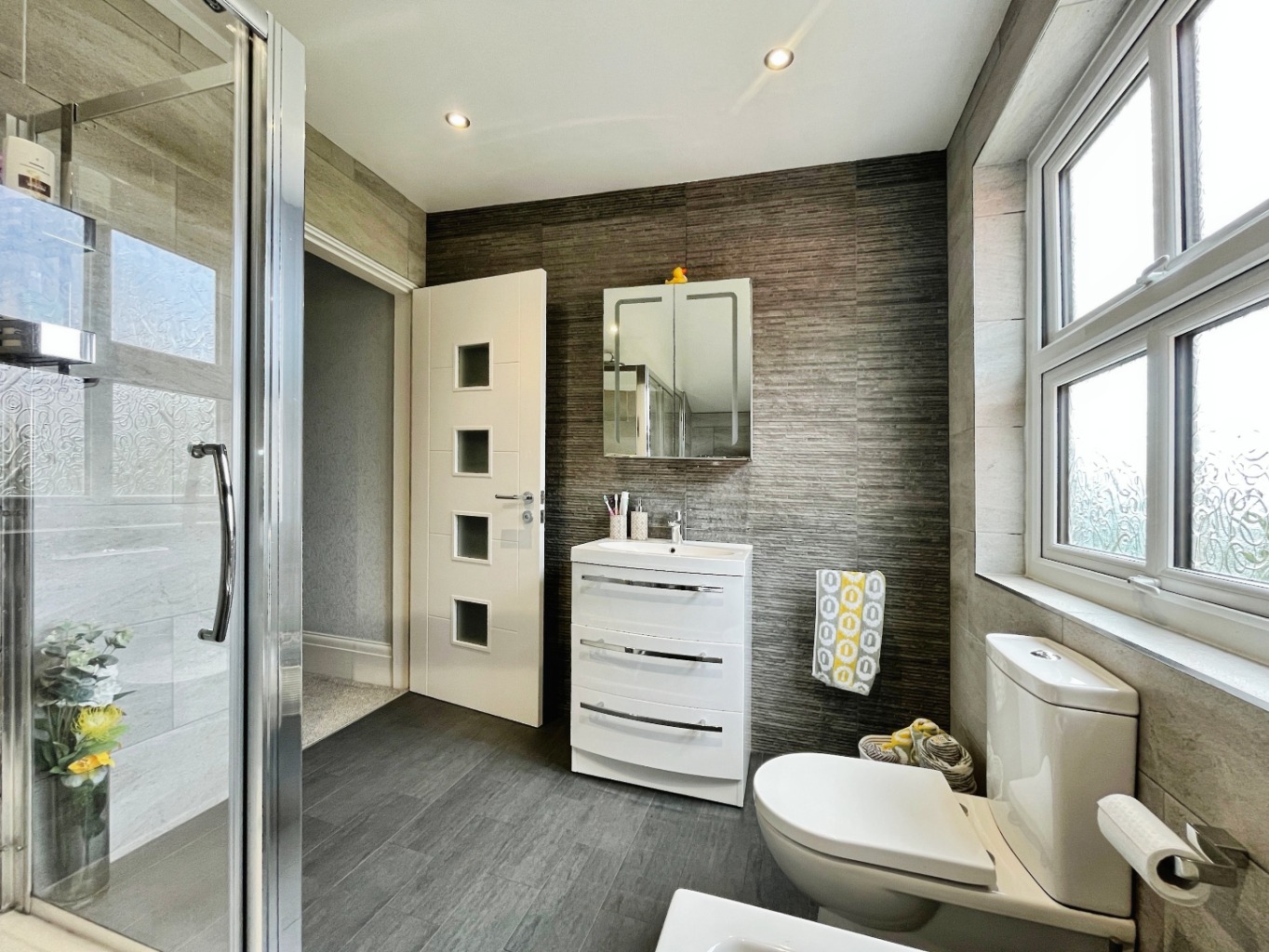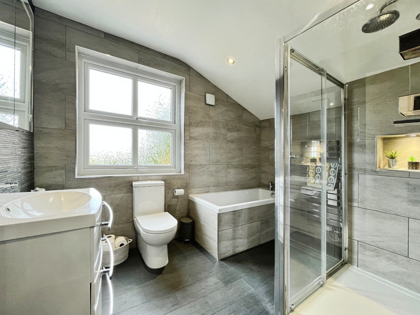 The well-equipped kitchen is supported by a separate utility and a contemporary ground floor shower room.