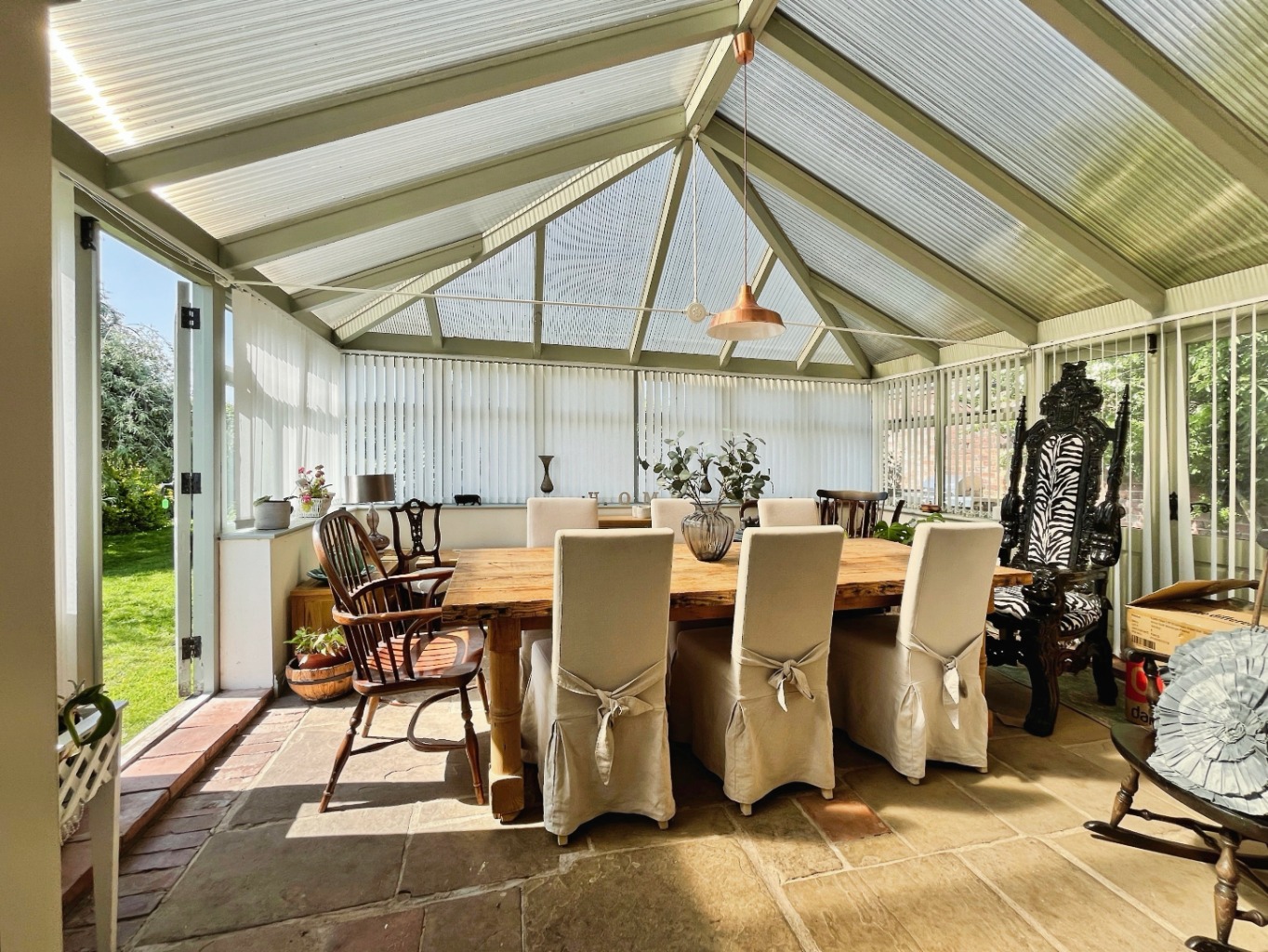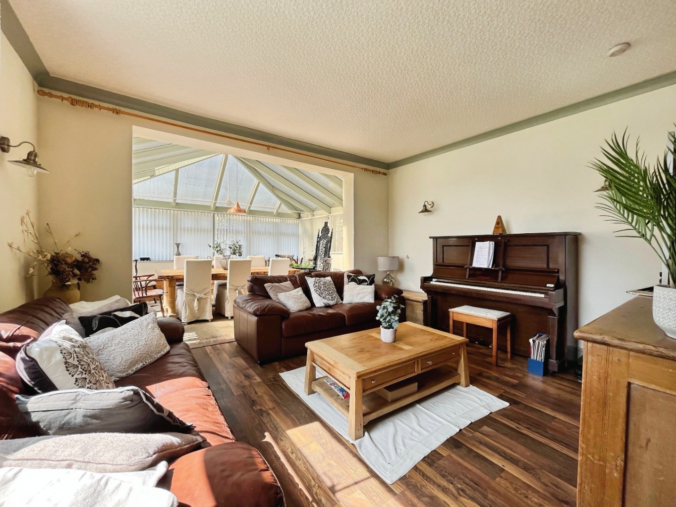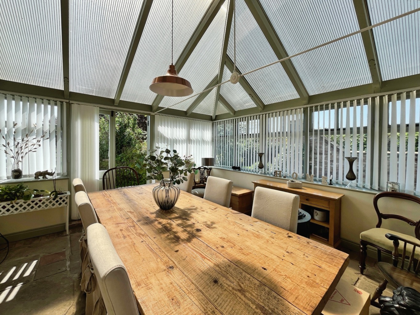The well-presented accommodation features an ENTRANCE HALL, comfortable LOUNGE, FARMHOUSE KITCHEN, separate UTILITY ROOM, ground floor SHOWER ROOM, and an additional reception room that opens to a delightful CONSERVATORY extension.