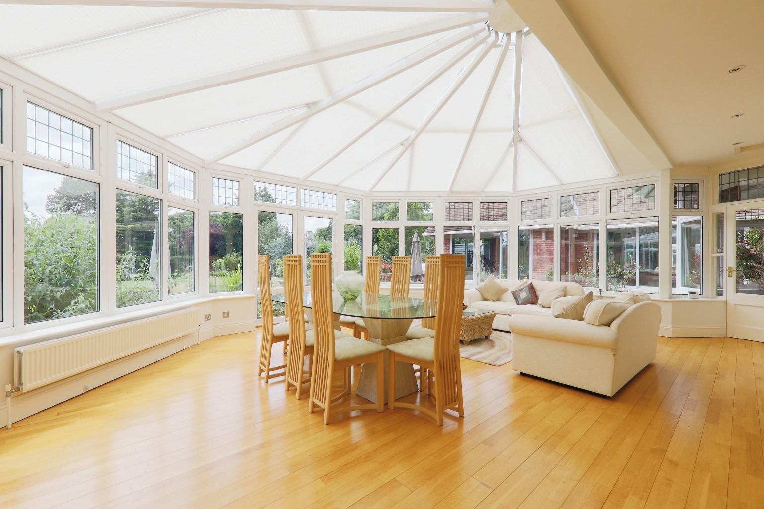 From here, you can step through a connecting door to the large conservatory, a wonderful spot to enjoy the garden views all year round.
