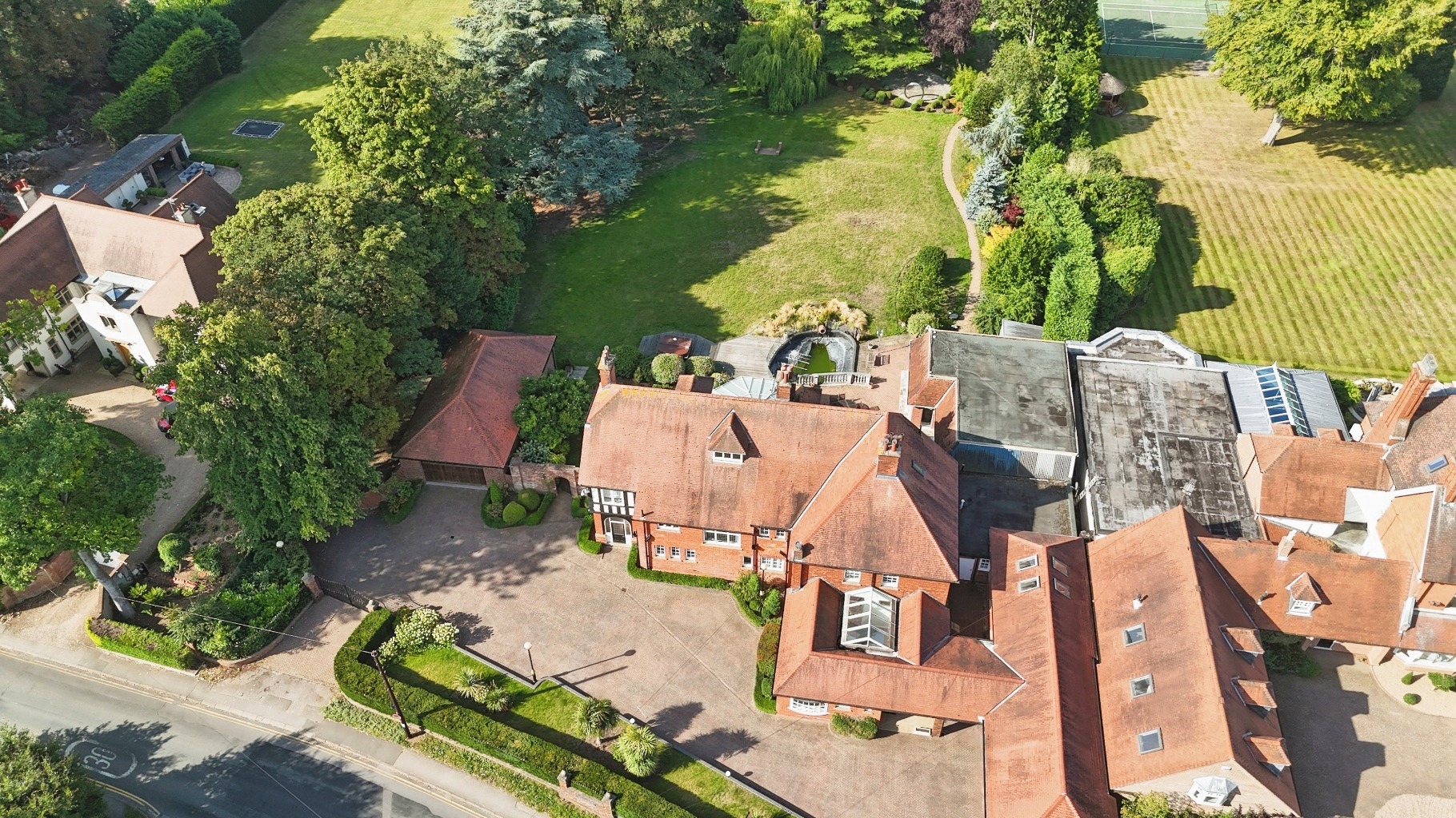 SummaryThis residence offers modern conveniences within a stylish period setting, featuring superb leisure facilities such as an indoor heated pool, a games room, and a tennis court. With around 7,500 sq. ft. of living space, the property includes seven bedrooms and comprehensive local amenities. Plus four car garage, two car carport with drive and electric gates.