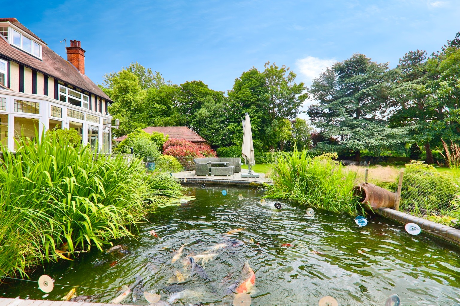 This stunning Edwardian property is set on a beautifully landscaped two-acre, south-facing plot.