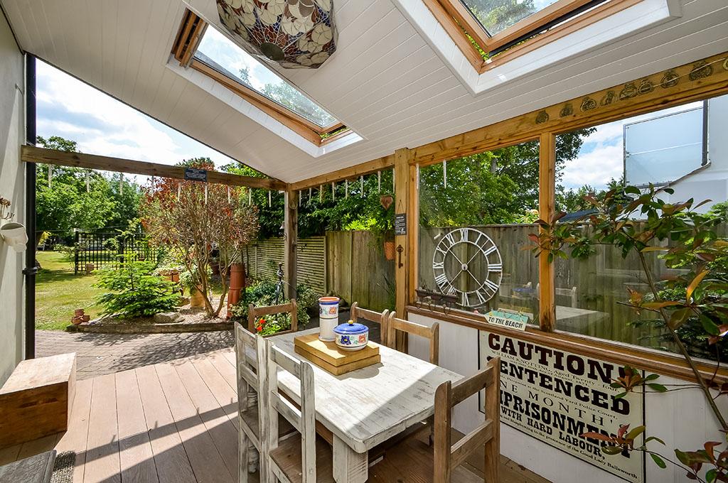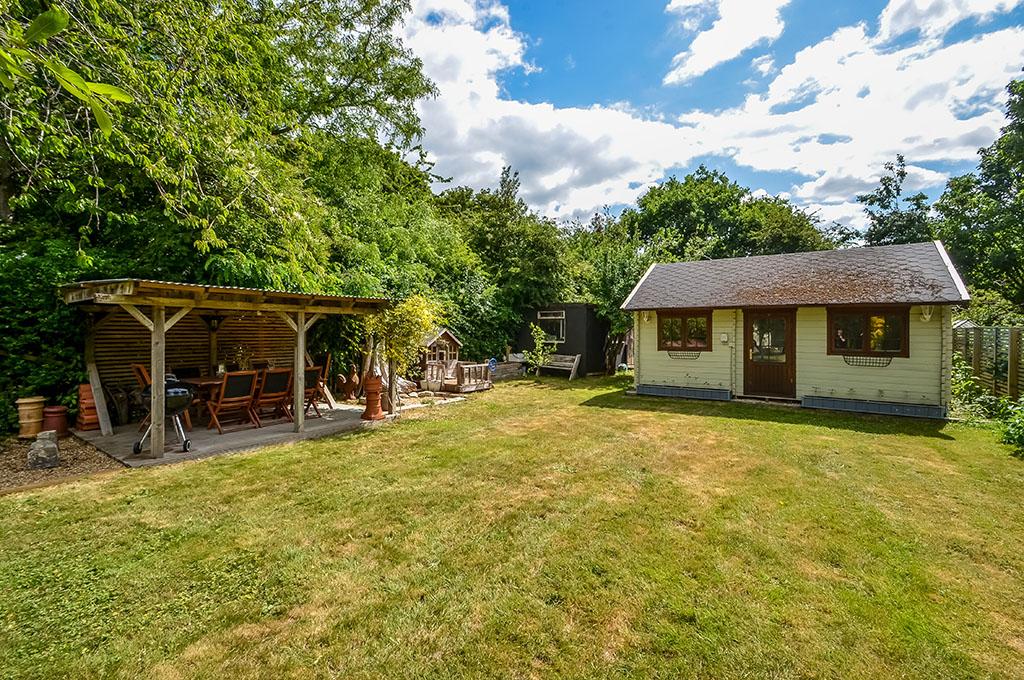 At the bottom of the garden is a useful detached studio, ideal for a variety of uses, such as a home-office, hobbies room, teenage den or play area for younger family members. Beyond the studio there is a very useful gardener's work/storage area with a large shed, a chicken coop and plenty of space for vegetable beds and composting etc. A gate leads onto a footpath, ideal for taking the dog for a quick stroll.