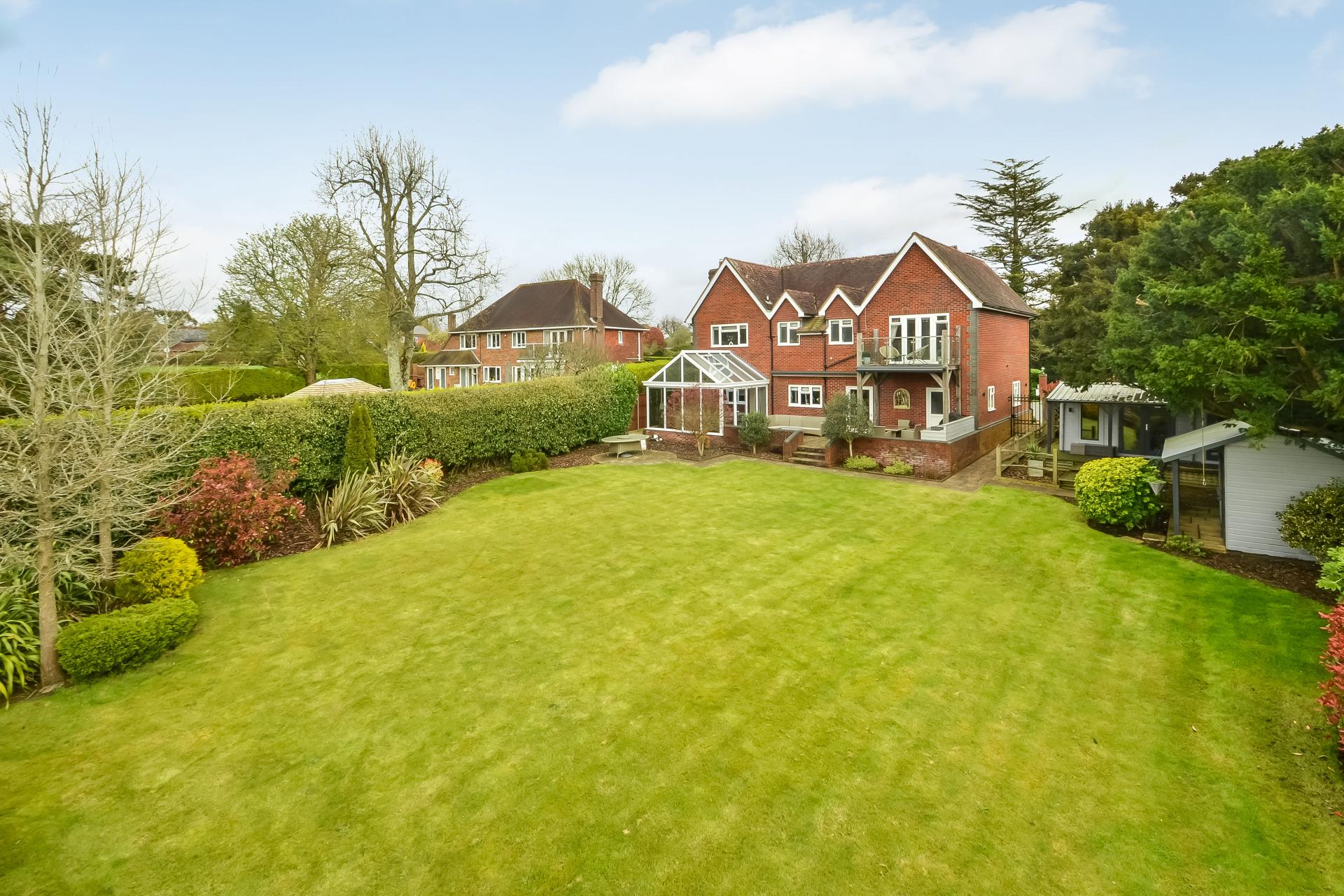 PROPERTY SUMMARY What can only be described as a house for all seasons. This detached family home is set in a beautiful semi-rural community backing onto a well know golf course and arable land in Rowlands Castle, it was built with modern 21st Century facilities in mind as well as spacious open plan accommodation including a fabulous sized sitting room which opens onto a double glazed conservatory, a large refitted kitchen / breakfast room with doors leading to the formal dining room and the added advantage of having a separate utility room, there is also a study and cloakroom on the ground floor. The property has the added advantage of four double bedrooms each with en-suite facilities, the primary bedroom having a vaulted cathedral style ceiling and balcony with outstanding views to the rear over farmland. The grounds extend from a lawned front garden and driveway to area of more solitude and privacy to the rear with a raised terrace opening onto a large lawn with patio areas backing onto the fields and views towards woodland beyond. Oaklands House occupies a very sought after position both with its semi-rural surroundings and proximity to the thriving village of Rowlands Castle, with its social events including the Summer Fair, May Day picnic, The Green recreation ground, village shop and post office, doctors and veterinary surgery. Having a mainline railway station within the village providing access to cities on the south coast as well as London Waterloo in approximately 1½ hours. Oaklands House was built approximately 21 years ago and benefits from having double glazing, gas fired central heating as well as the whole house having a heat recovery ventilation system, there is also a gated entrance leading to large driveway with parking for numerous cars, a double garage, summer house and storage sheds. The outstanding entrance hall has a vaulted ceiling and central apex of the roof, as well as exposed oak beams in the primary rooms, a quality fitted kitchen, first floor terrace balcony, early internal viewing of this impressive, detached home is strongly recommended in order to appreciate not only the accommodation but the location on offer.