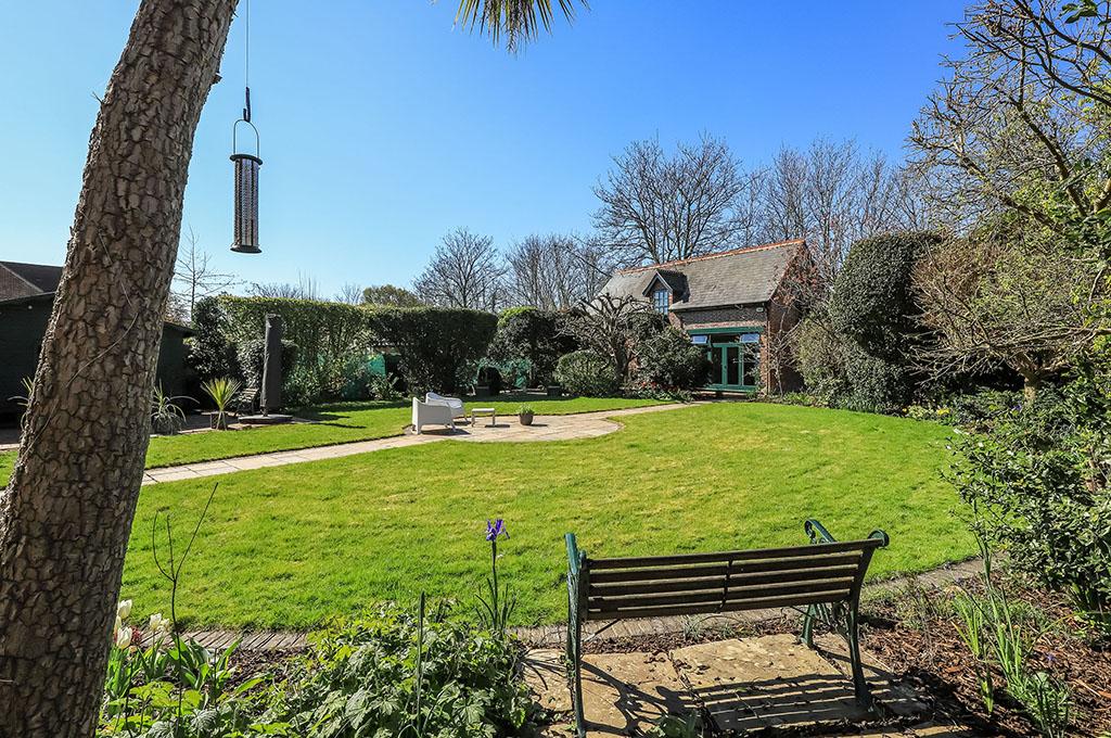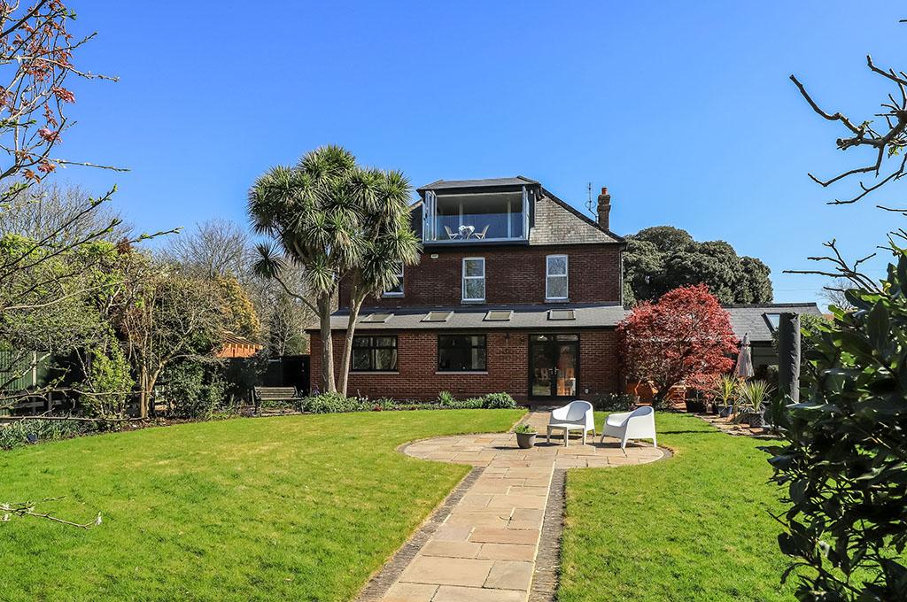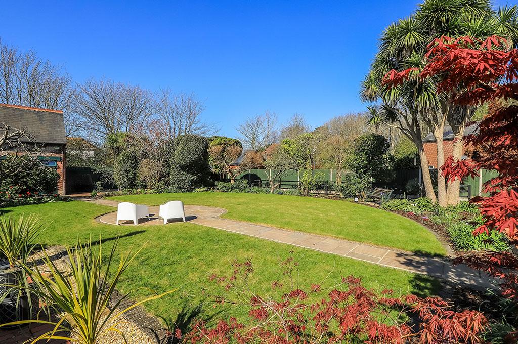 To the rear, the large garden is mature and well-tended with a central feature pathway through the lawn towards the Coach House. There are pleasant patio areas and a detached timber garden room from where to enjoy some sun or shade. At the end of the garden there is a gate to a wooded area which leads onto The Hayling Billy Trail. Ideal for surfing or kayaking.