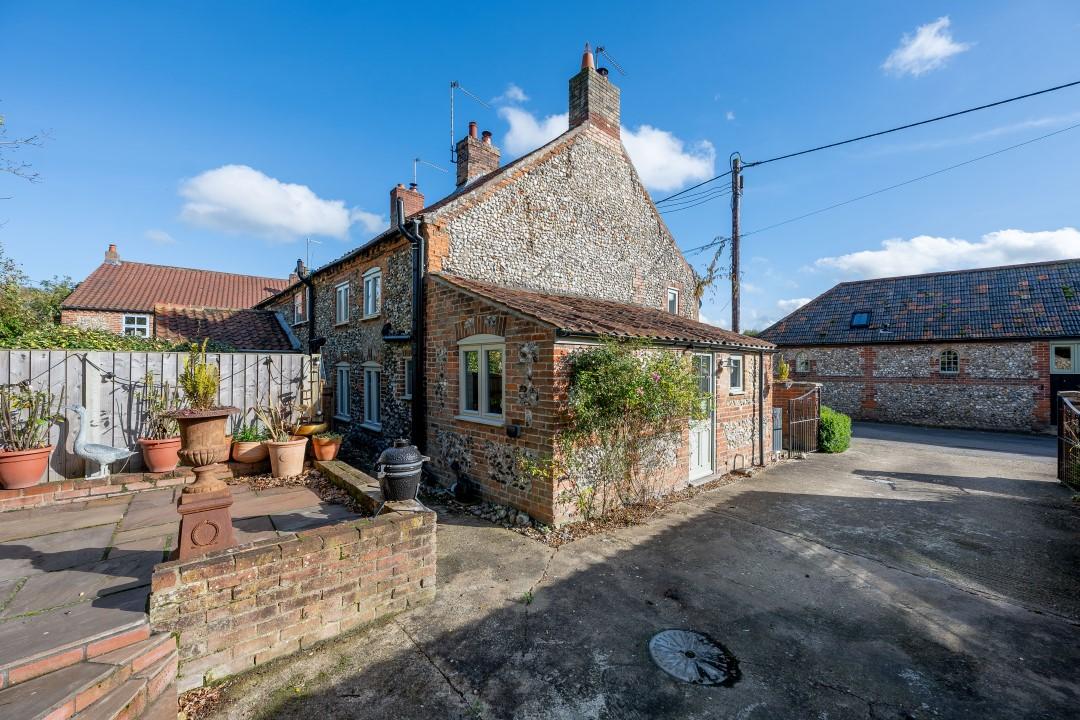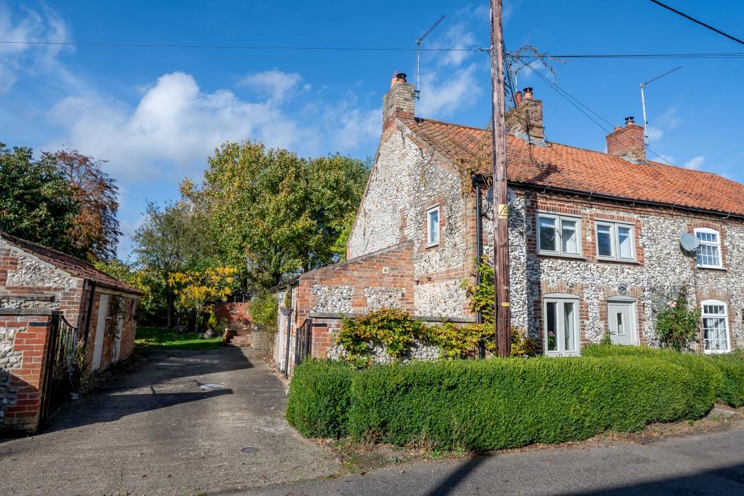 In highly sought-after East Rudham, this wonderful brick and flint end of terrace period cottage offers a good-sized landscaped garden and off-street parking for two vehicles within a gated driveway. The property has been renovated in recent years with new windows and is superbly presented throughout. Outside there is a row of three useful outbuildings and, to the rear of the property, a terraced area for entertaining. Perfect as a full-time residence or a weekend getaway with all that North Norfolk has to offer