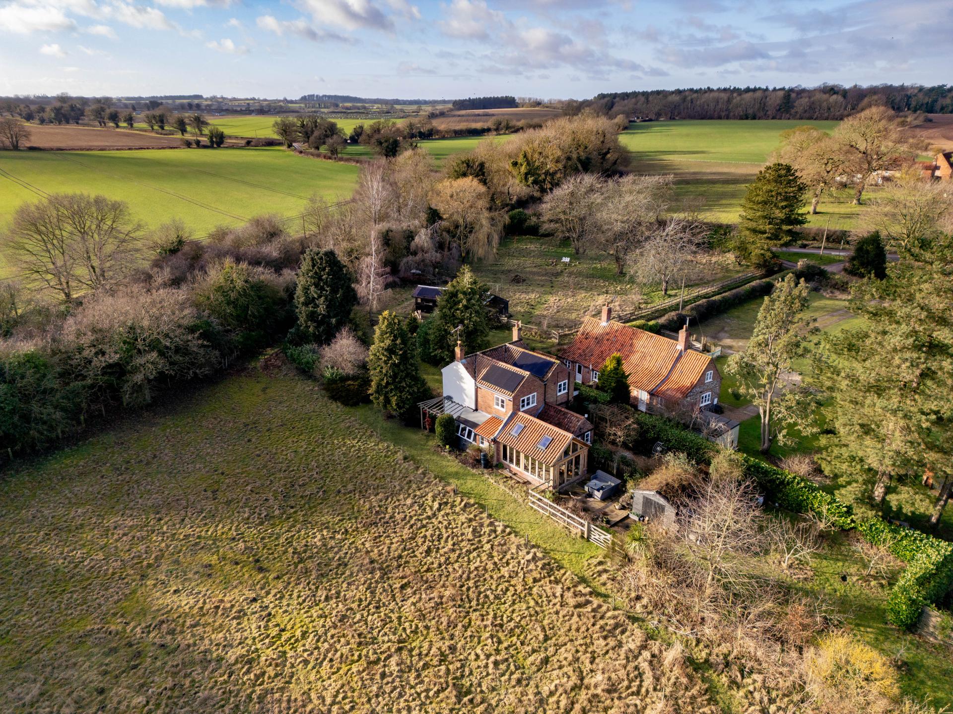 GUIDE PRICE £550,000 -£575,000. An attractive, deceptively spacious and characterful property, set in grounds of almost an acre in the quiet rural Norfolk hamlet of Broom Green, close to North Elmham, dating from 1860, the property itself is a charming rural cottage (now significantly enhanced and extended). Adjacent to the Sennowe Estate, it has the benefit of the most idyllic countryside views from the recently added oak garden room and offers three bedrooms (one en-suite) and living space of the highest decorative order. Opportunity for annexe accommodation (STPP) where the stable block is located.
