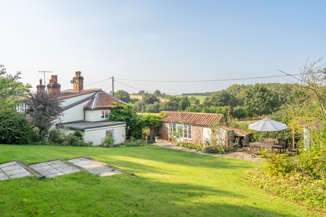 This charming country cottage sits in a superb position with nearly an acre of gardens and wonderful rural views. A delightful home with lots of character and a friendly feel, there’s plenty of space for a large family or for entertaining, both indoors and out. The setting is peaceful, but you’re well placed for the pretty and popular towns of Aylsham and Holt and close to the beautiful Blickling estate.