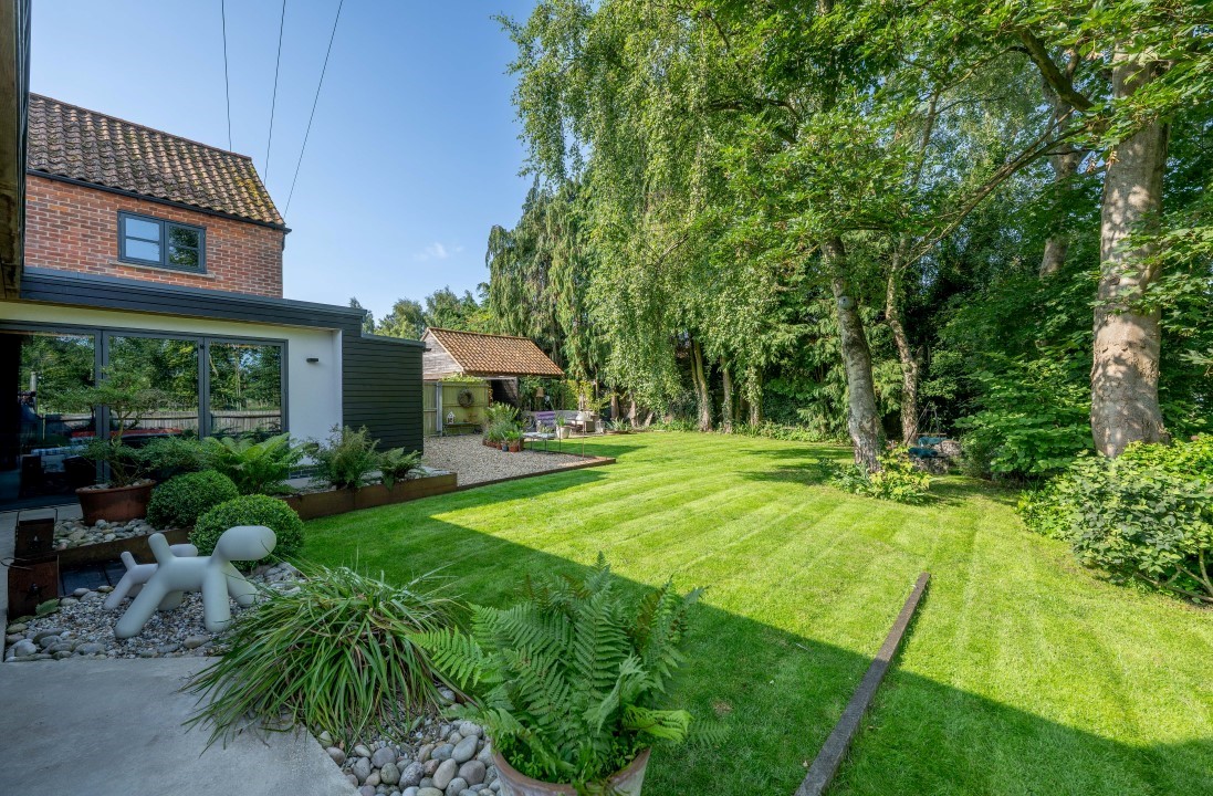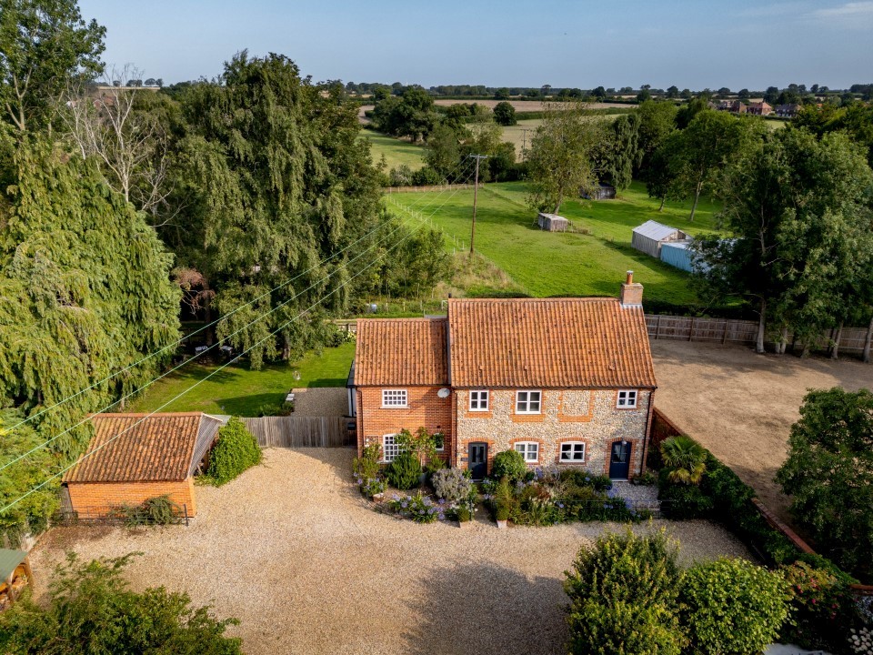 Set on the rural edge of the highly sought-after village of East Rudham, this truly unique detached property is a bold yet sensitive blend of local vernacular and contemporary design, perfectly crafted for extended family living and year-round comfort. Adjoining open countryside, this remarkable home stands out for its beautifully appointed, light-filled interiors, statement open-plan kitchen/living space, mature south-facing garden and impressive flexibility of accommodation − all enhanced by impeccable attention to detail and numerous thoughtful improvements undertaken by the owners.