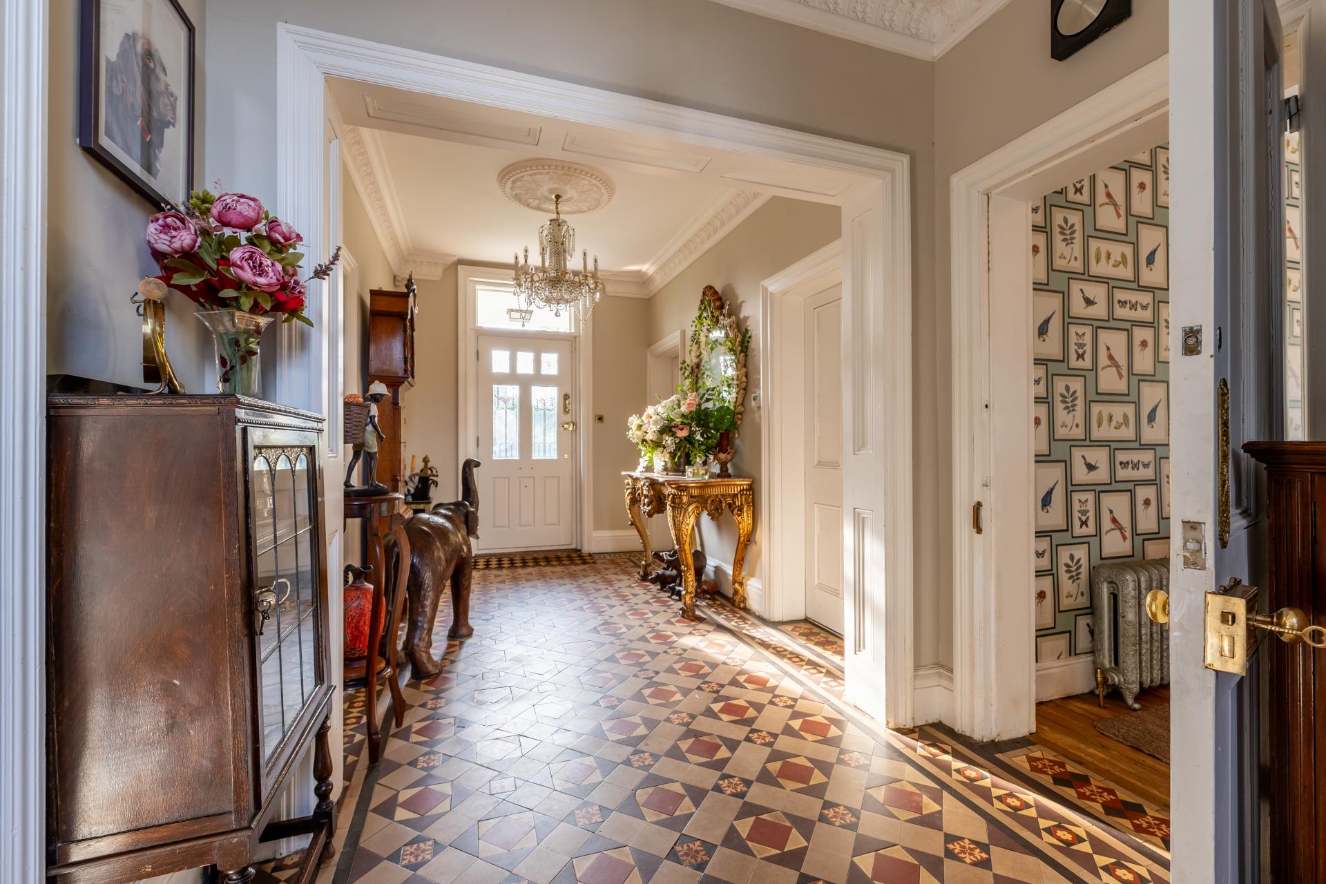 Open the stained glass entrance door to be greeted by the opulent reception hall, with beautiful mosaic tiled flooring hinting at the standard of finish which can be found throughout the home. Venturing further, the restored fireplace in the dual aspect dining room lends a grandeur befitting the smartest of dinner parties.