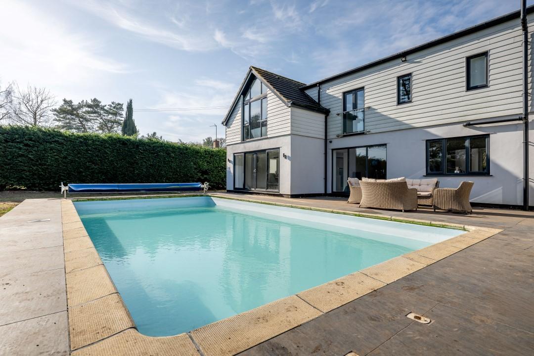GUIDE PRICE £950,000-£975,000 With a setting on one of the most sought-after roads in West Norfolk, this incredible property with its handsome modern styling is the dream family home. The accommodation is light and airy and beautifully presented throughout. Standing on a plot of 0.6 acre (stms), there is the luxury of an outdoor heated swimming pool, and off-road parking for numerous vehicles on the large, shingled driveway. This property offers so much flexibility in its layout and, with two ground floor bedrooms, is perfect for a range of buyers including those needing multi-generational living.