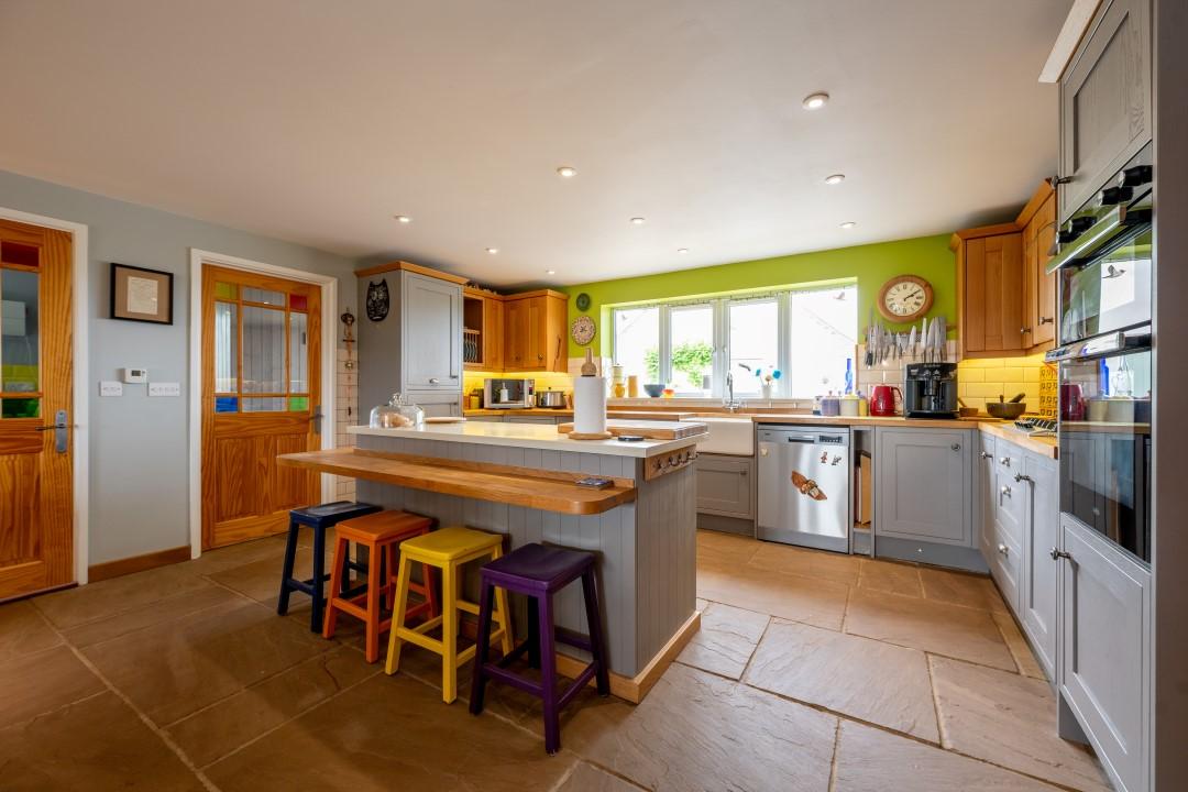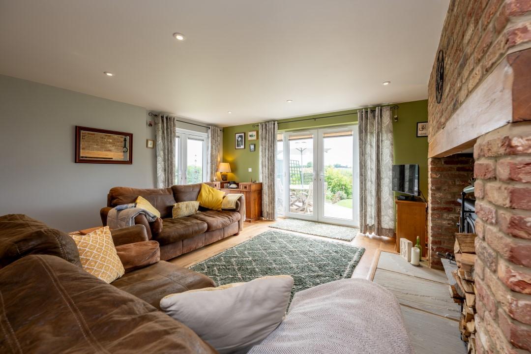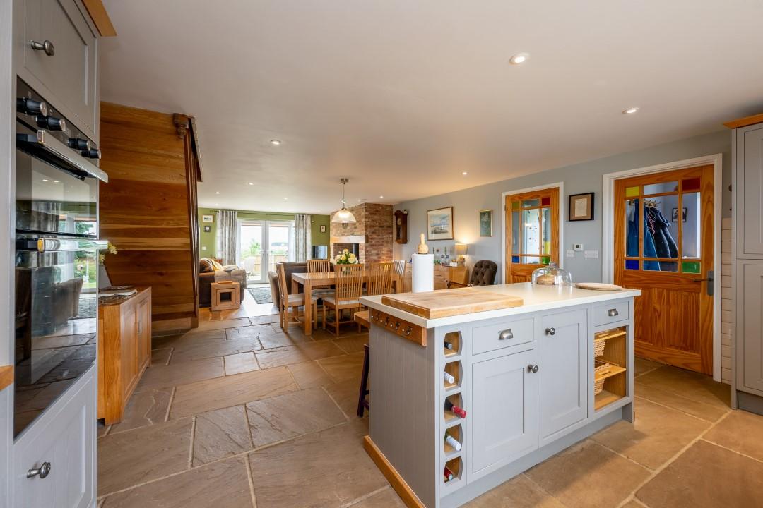 - Open-Plan Kitchen, Dining and Living Room with Feature Fireplace and Wood Burner