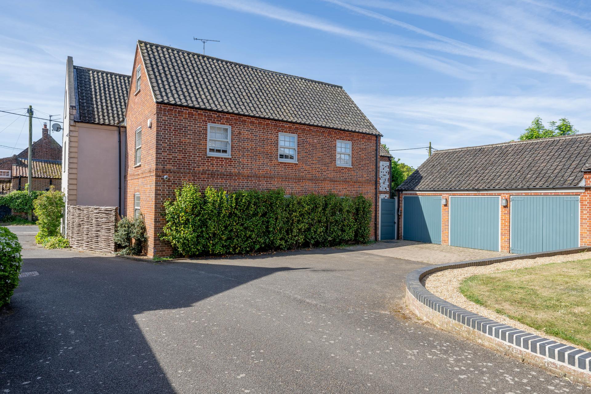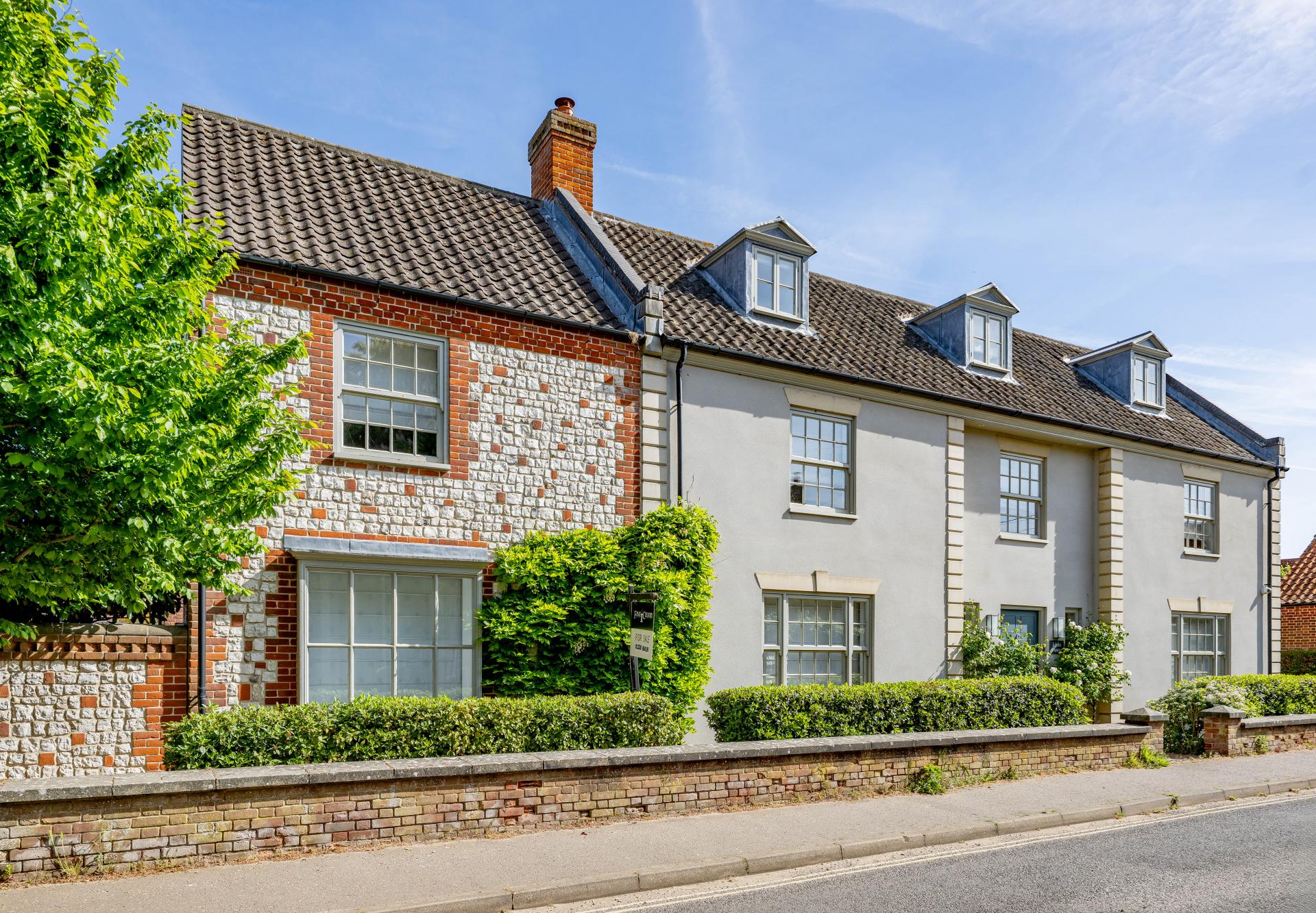GUIDE PRICE OF £1,450,000 to £1,495.000. THIS is Possibly the best value per square foot (circa £290) and definitely one of the most prestigious houses, in the heart of Brancaster. Located within an exclusive close at the heart of sought-after Brancaster village, this elegant double fronted property of red brick, flint and render was built in 2005 by Robbie Wright Brothers, the highly regarded Norfolk builders. Arranged over three floors with an abundance of large windows and substantially sized rooms throughout, the living accommodation comprises seven bedrooms (the main bedroom with an en suite), a family bathroom, a spacious kitchen/breakfast room with adjoining dining room and utility room, and a living room opening into a garden room.