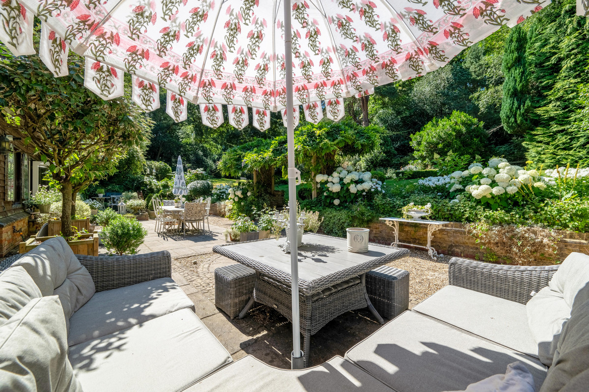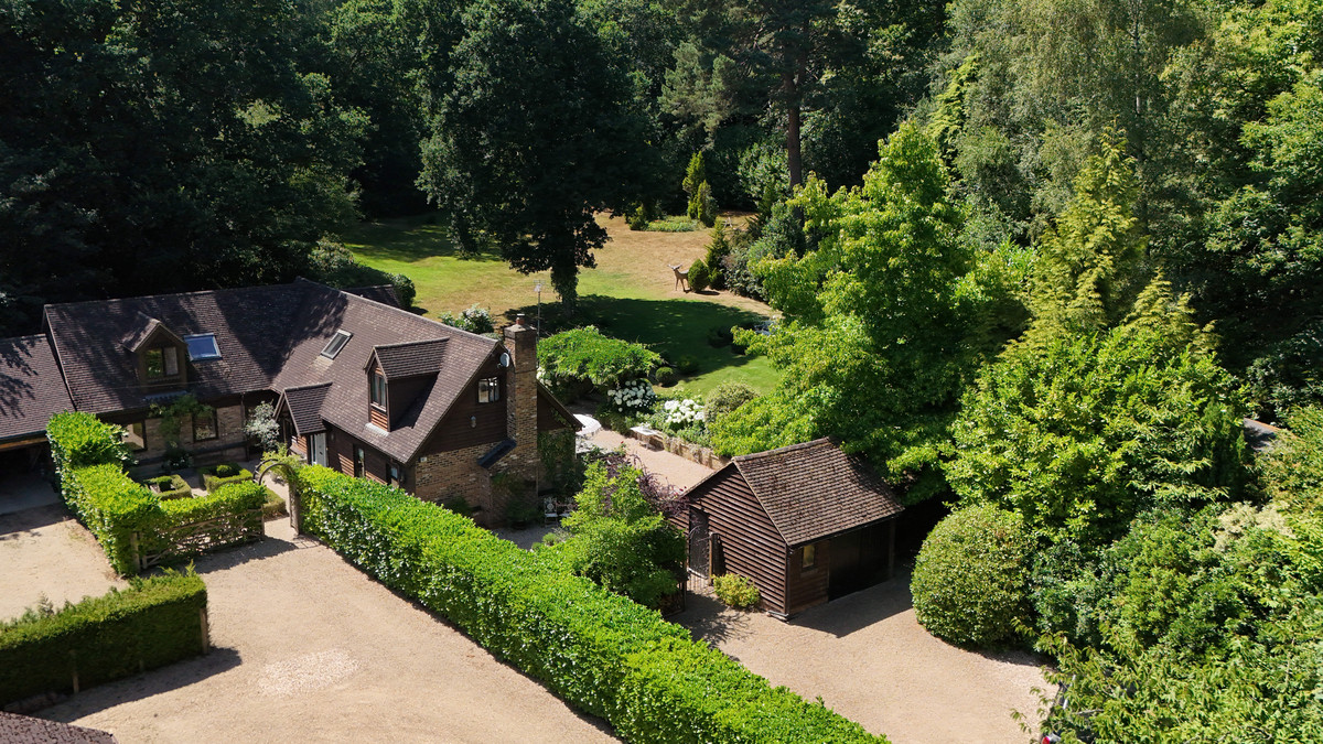 The expansive lawned gardens, extending to approximately 0.75 acres, are beautifully framed by mature planting that offers colour and interest throughout the seasons. A particularly special feature is the private gated access to the breathtaking Swinley Forest, with its 1,000 hectares of woodland — a haven for walking, cycling, and connecting with nature, quite literally on your doorstep.