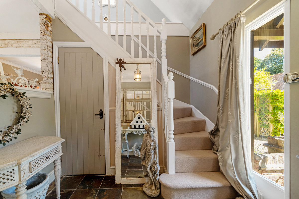 Stable House is discreetly positioned behind mature hedging, with secure electric wooden gates opening onto a generous parking area leading directly to a charming timber garage. Thoughtfully landscaped and cleverly zoned pathways guide you to the front entrance while also providing easy access to the rear gardens — a true centrepiece of this remarkable home.