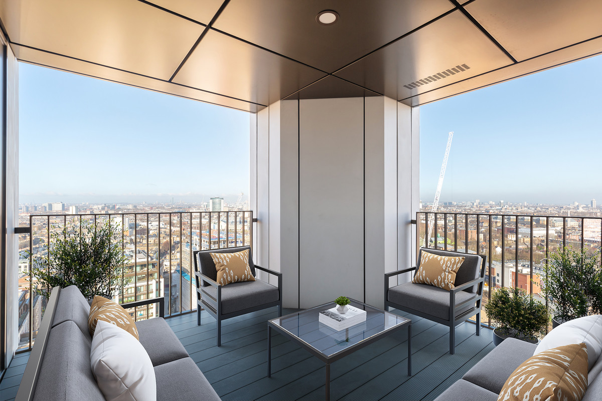 Located in one of London’s most prestigious developments, this exceptional two-bedroom apartment occupies the 21st floor of a building by award-winning developers, St George.
