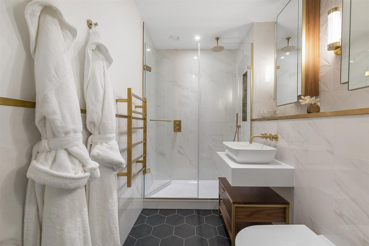 Both bedrooms are equipped with fitted storage and floor to ceiling windows, again overlooking the canal. The apartment further benefits from underfloor heating and air conditioning.