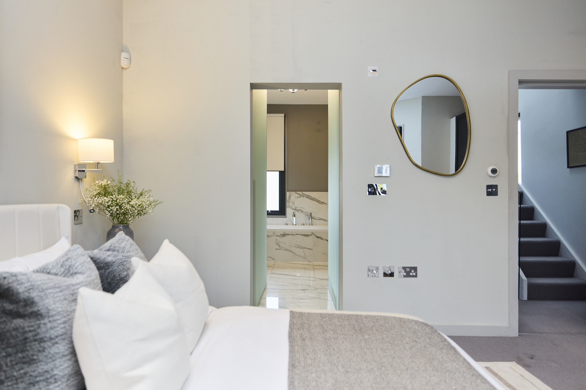 The remaining four double bedrooms are spread across the first and second floors, with the master bedroom offering generous built-in wardrobes and a large en suite bathroom with dual sinks.