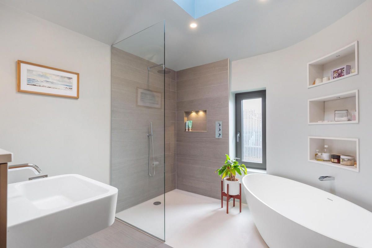 Beyond its striking design, the house offers the unique advantages of Passive House living – filtered fresh air, triple glazing. A fully integrated Mode eDin+ lighting system with external sun blinds.