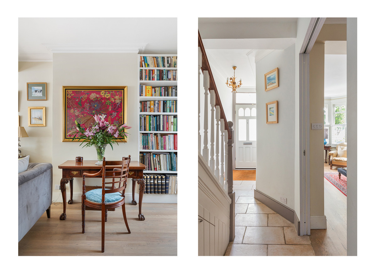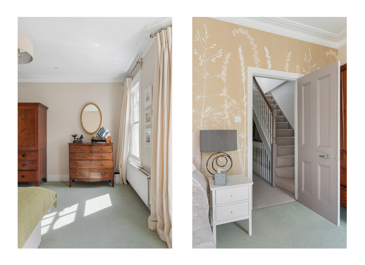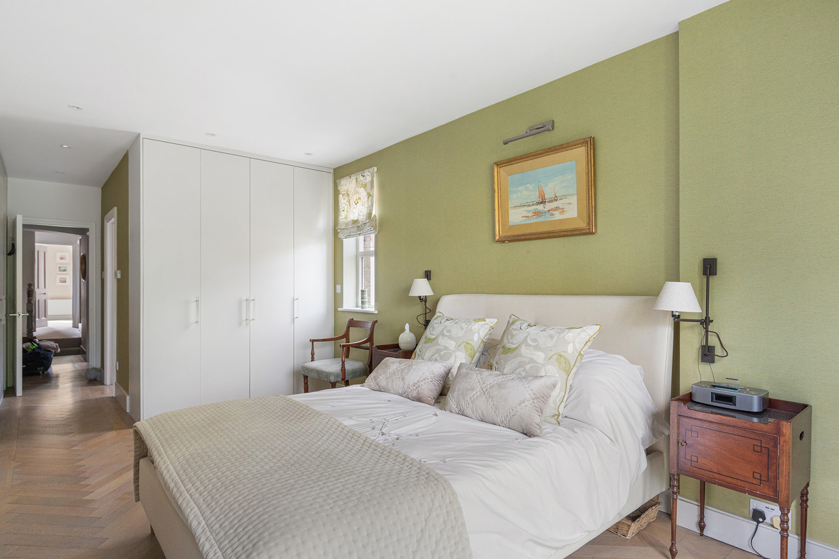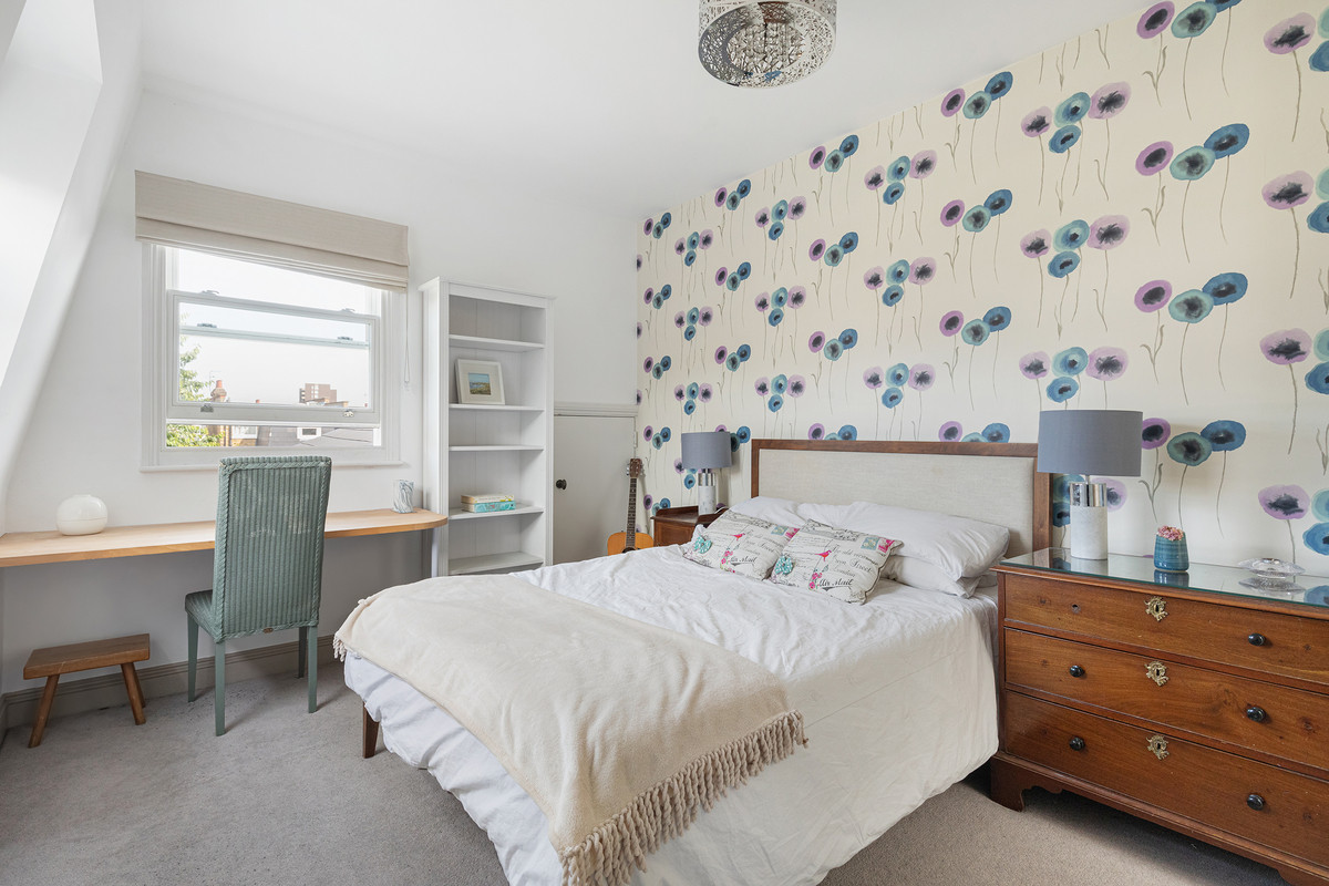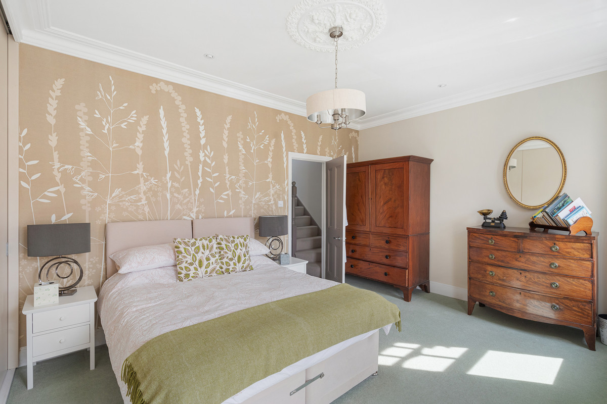 The first floor is home to three double bedrooms, one of which is the principal suite overlooking the garden, and boasting fitted storage and an en-suite bathroom. Both other bedrooms on this floor are extremely well proportioned and share a family bathroom. On then second floor you will find two further double bedrooms and an additional family bathroom. Ample eave storage is also available.