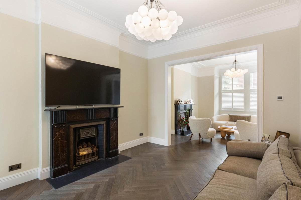 At 4,700 sq ft, this semi-detached Fulham home is among the area’s largest. Recently refurbished, it features six bedrooms, a Bulthaup kitchen with Gaggenau appliances, cinema, fitness studio and sauna — blending period elegance with contemporary luxury.