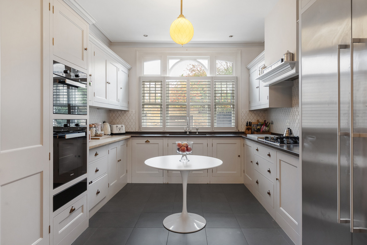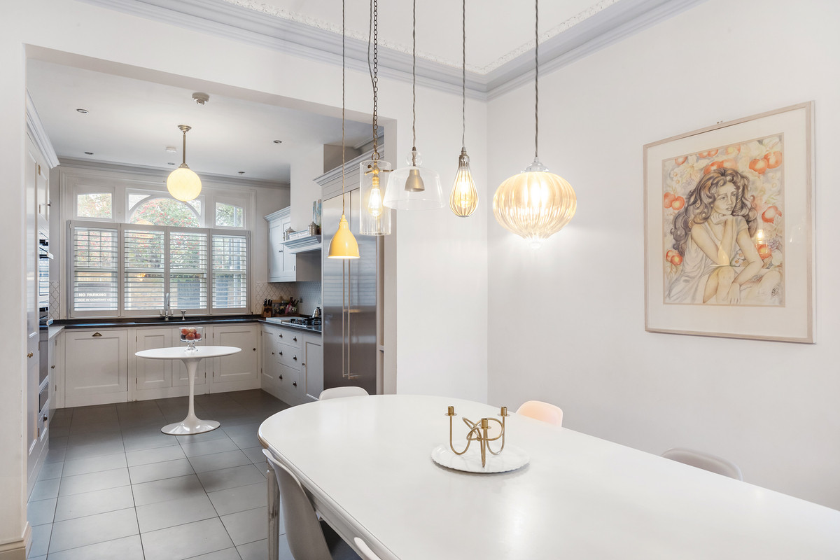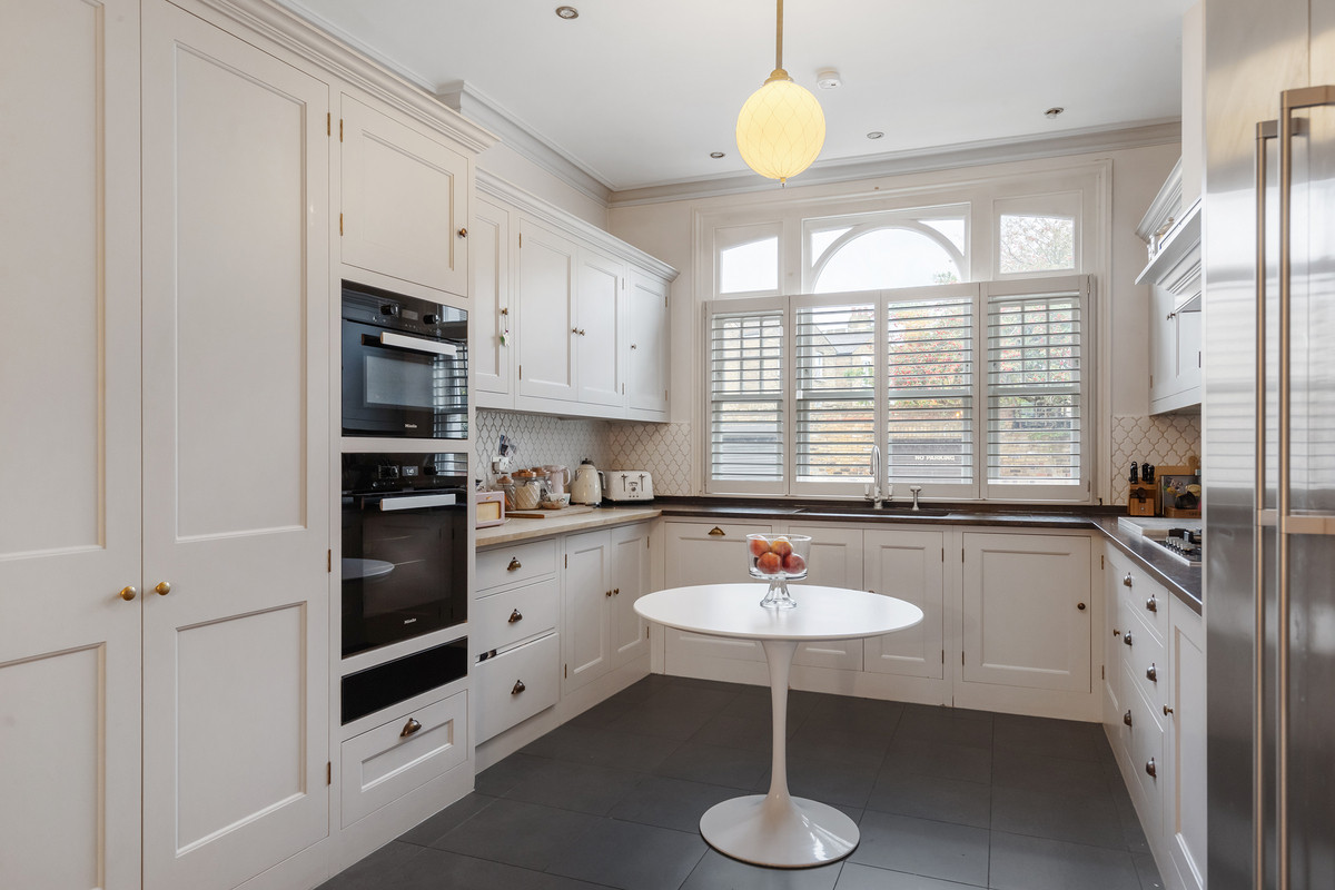 Upon entering, you are immediately greeted with character from the grand entrance hall and intricate coving. To the left, you enter the kitchen which boasts Miele appliances and bespoke cabinetry. The kitchen seats eight people with ease for formal or informal dining and is extremely well naturally lit from the original sash windows located at the front.