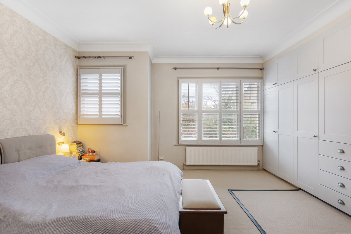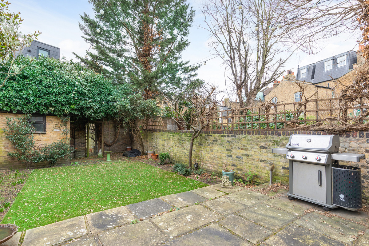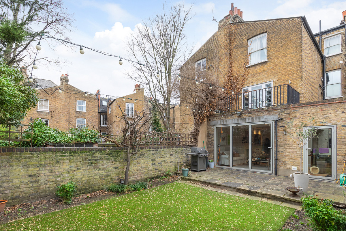 The first floor is home to two double bedrooms, both of which benefit from bathrooms. The principal room boasts a walk-in wardrobe, additionally with bespoke fitted storage and original wood flooring. The second bedroom on this floor is located at the rear of the house and benefits from a terrace overlooking the garden. Three further bedrooms are found on the second floor, all of which have bespoke storage and access to a family bathroom.