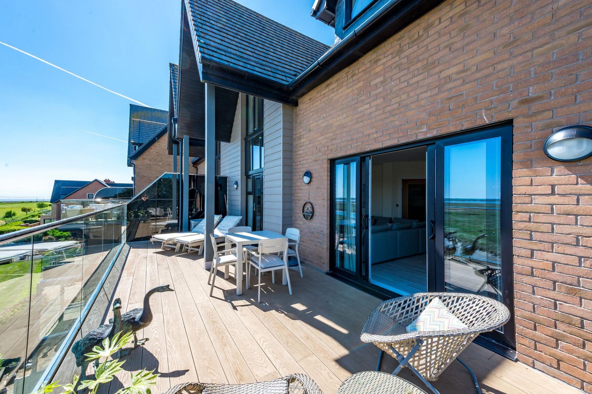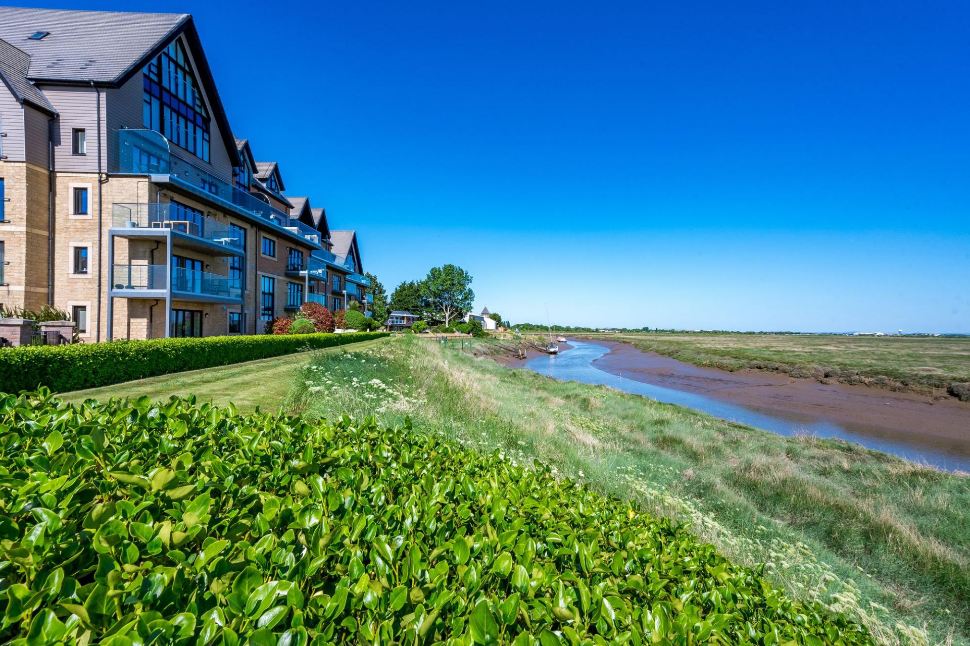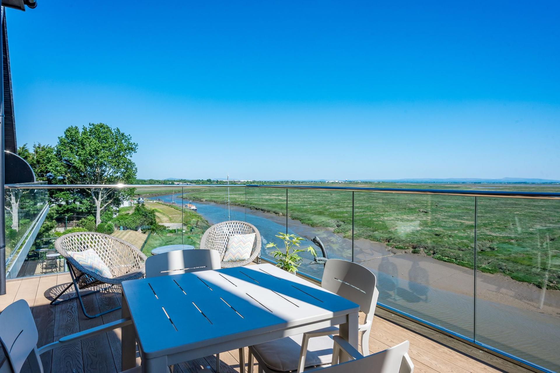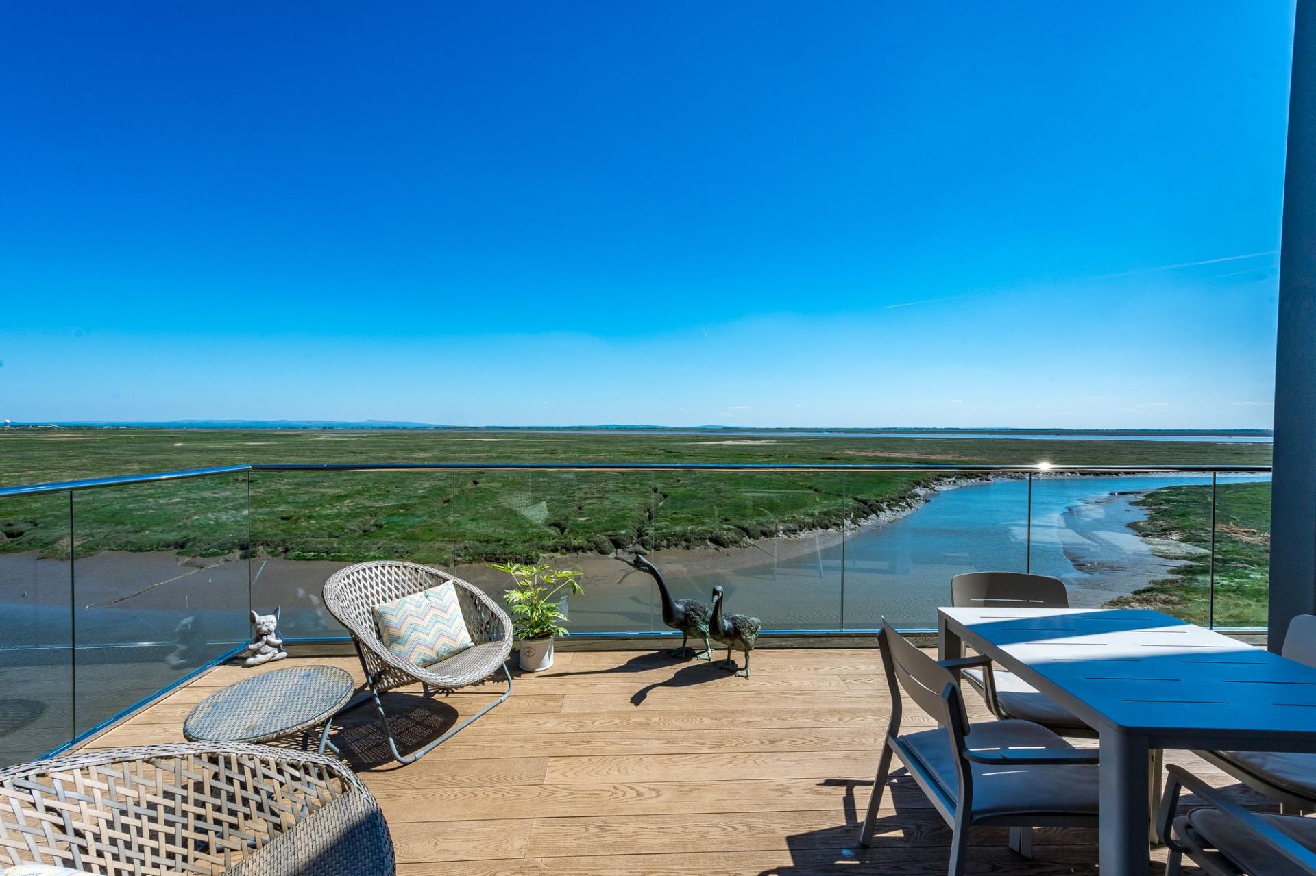 The apartment features three spacious double bedrooms, each tastefully decorated and designed to offer comfort, privacy, and flexibility. Two of the bedrooms benefit from elevated estuary views, allowing you to wake up to a landscape of shifting tides and open skies — a rare and wonderful feature.