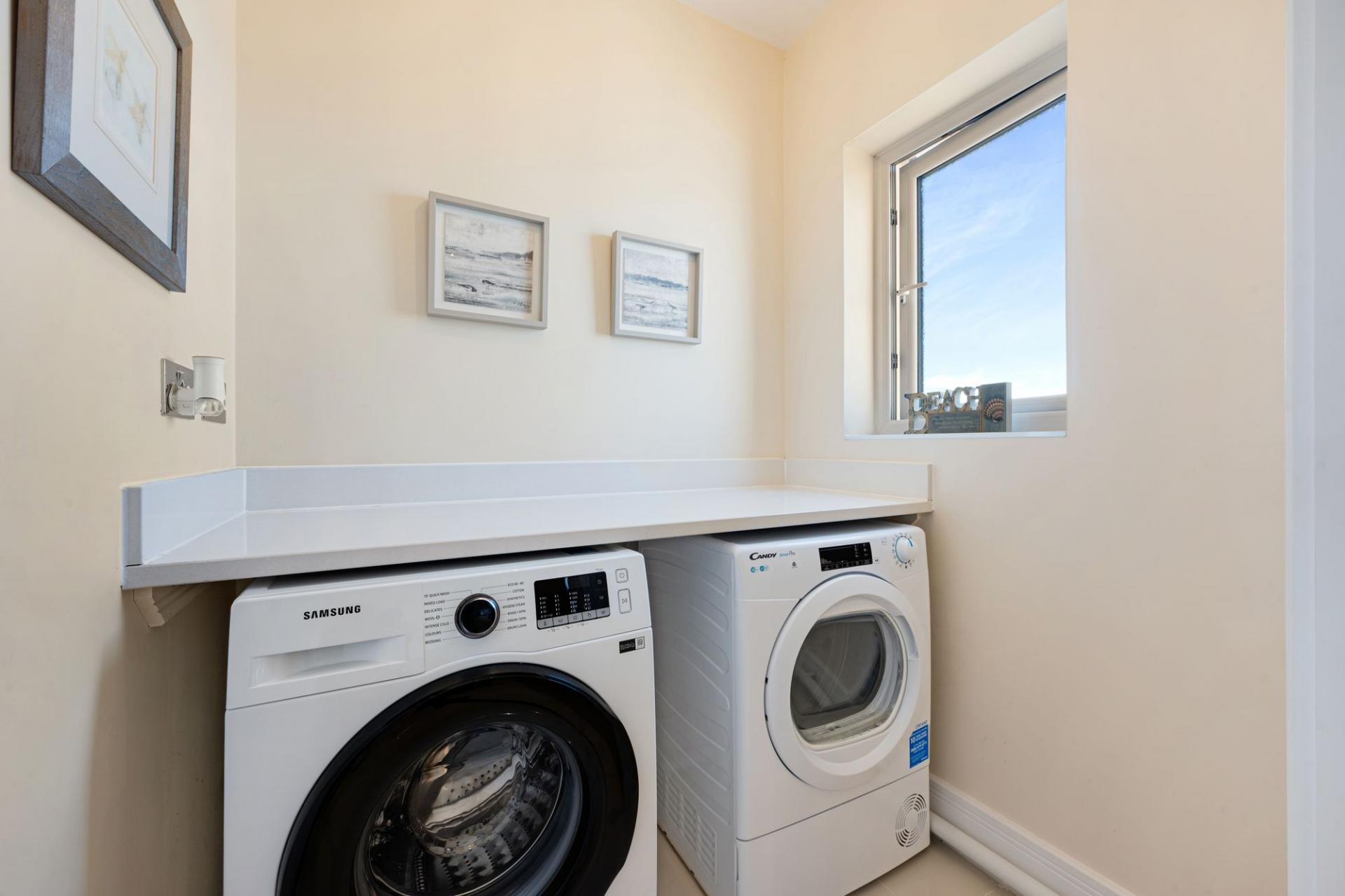 Just off the kitchen is a separate utility room, discreetly positioned to keep laundry and household tasks out of sight while adding valuable extra storage. This dedicated space helps maintain the clean, uncluttered feel of the main living areas — a real asset in modern apartment living.