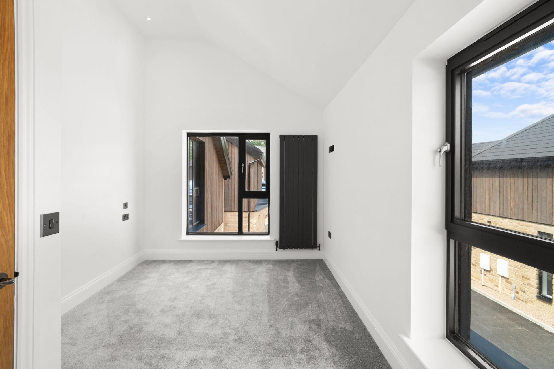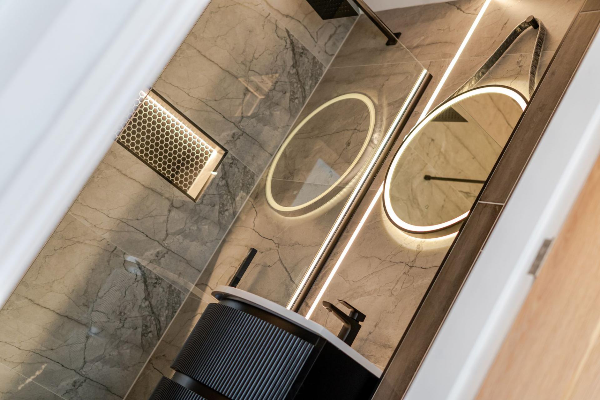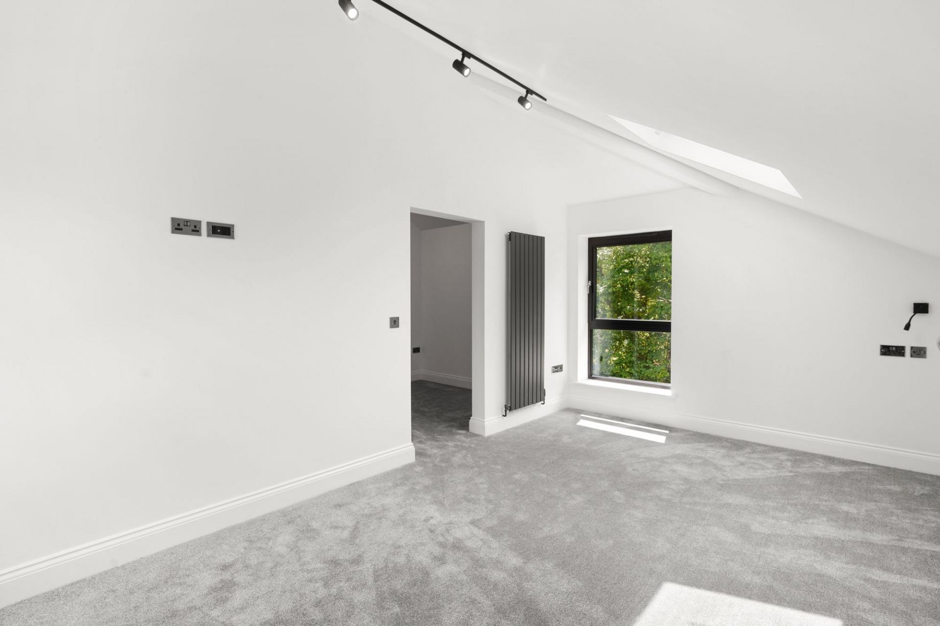 The three further bedrooms share easy access to the family bathroom, which is designed to the same exacting standards. The bathroom features a stand-alone bath perfect for relaxing soaks, a separate walk-in shower, and elegant illuminated niches that add a touch of sophistication.