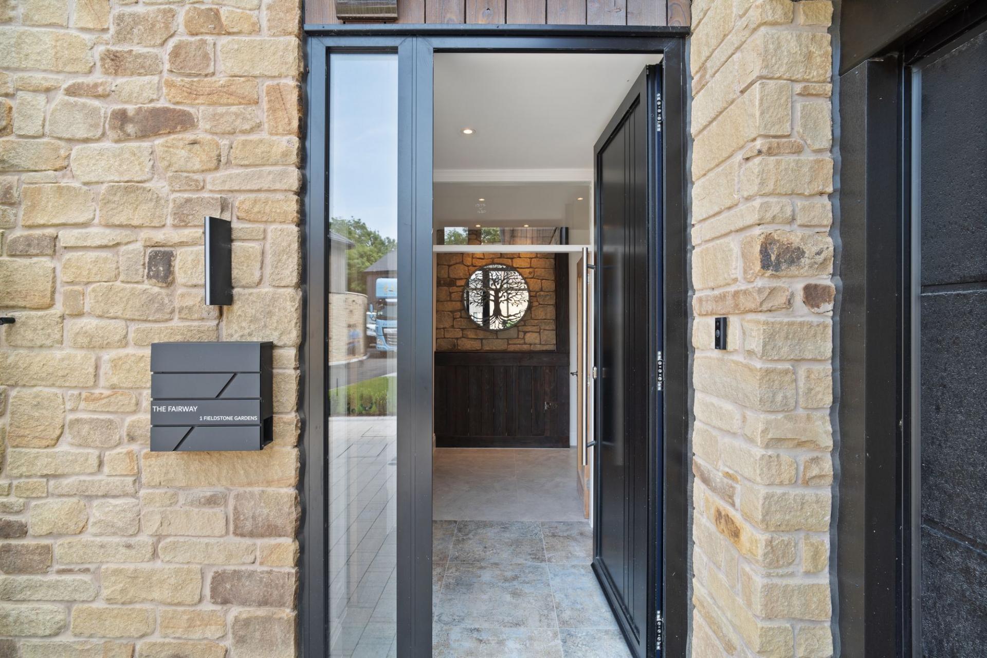 The exterior of The Fairway is a masterclass in modern rural architecture. Locally sourced Clitheroe buff stone and heat-enhanced timber cladding create a natural yet refined aesthetic, while black-framed aluminium windows and sliding doors add contrast and clarity.
