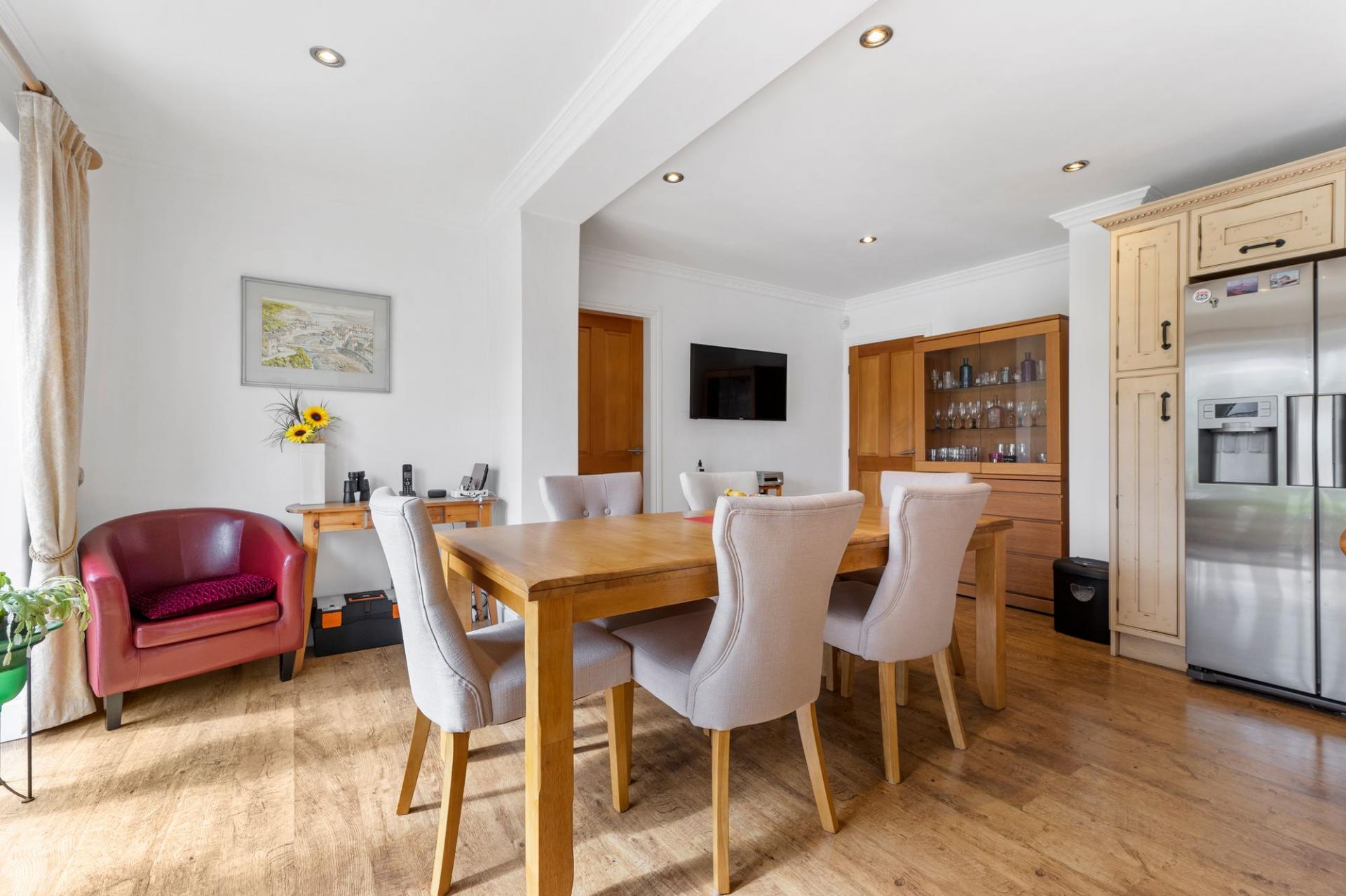 On either side of the hallway, you’ll find two distinct reception rooms. One is a cosy, welcoming lounge — ideal for relaxed evenings or quiet moments, finished in soft tones and perfect for unwinding at the end of the day. The second is a large and versatile lounge/diner, a space that lends itself beautifully to entertaining on a grand scale or gathering the family for special occasions. With room to create multiple seating and dining zones, it's a space that evolves with the needs of the household.