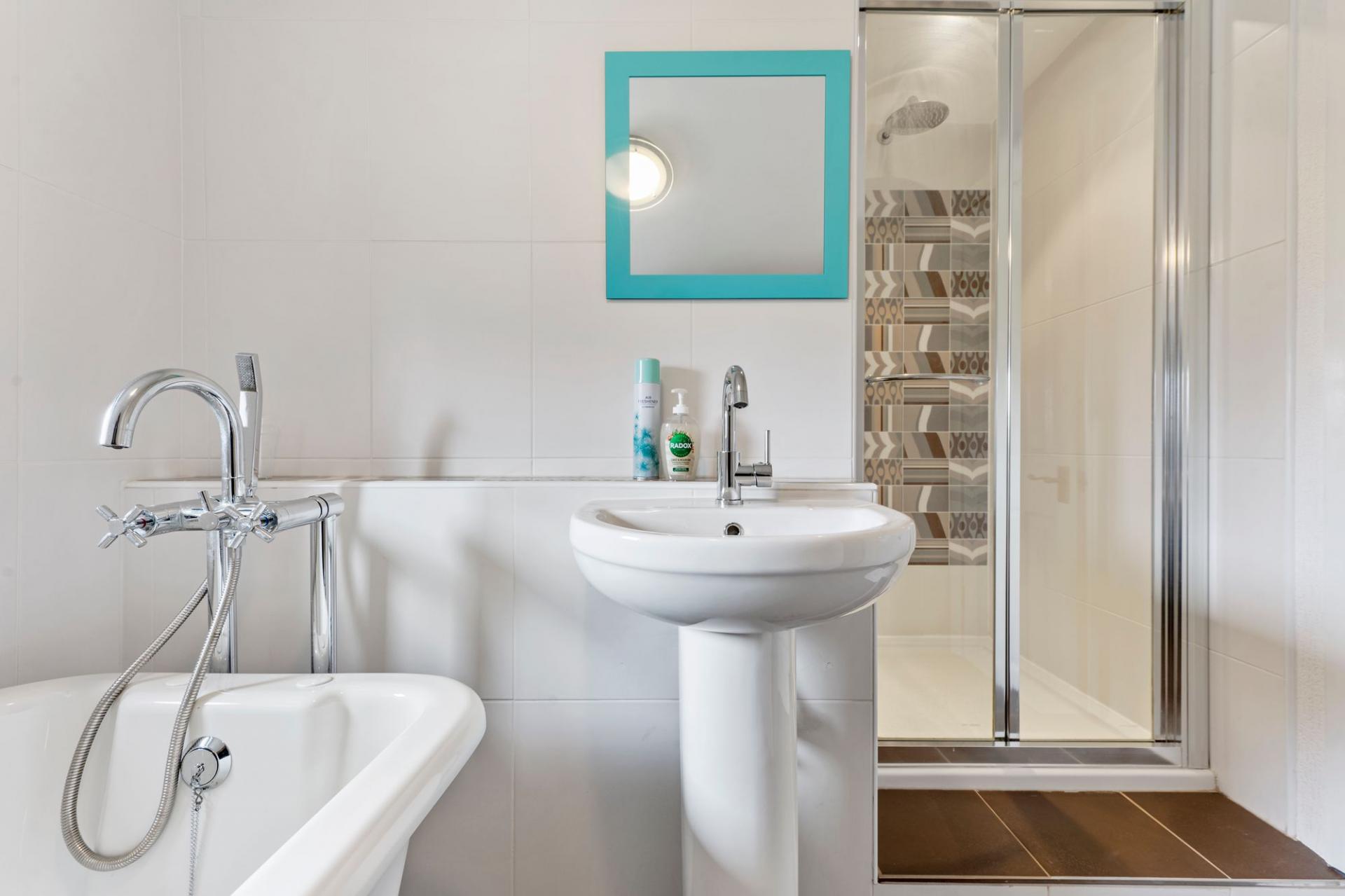 - Large four-piece family bathroom with separate bath and shower