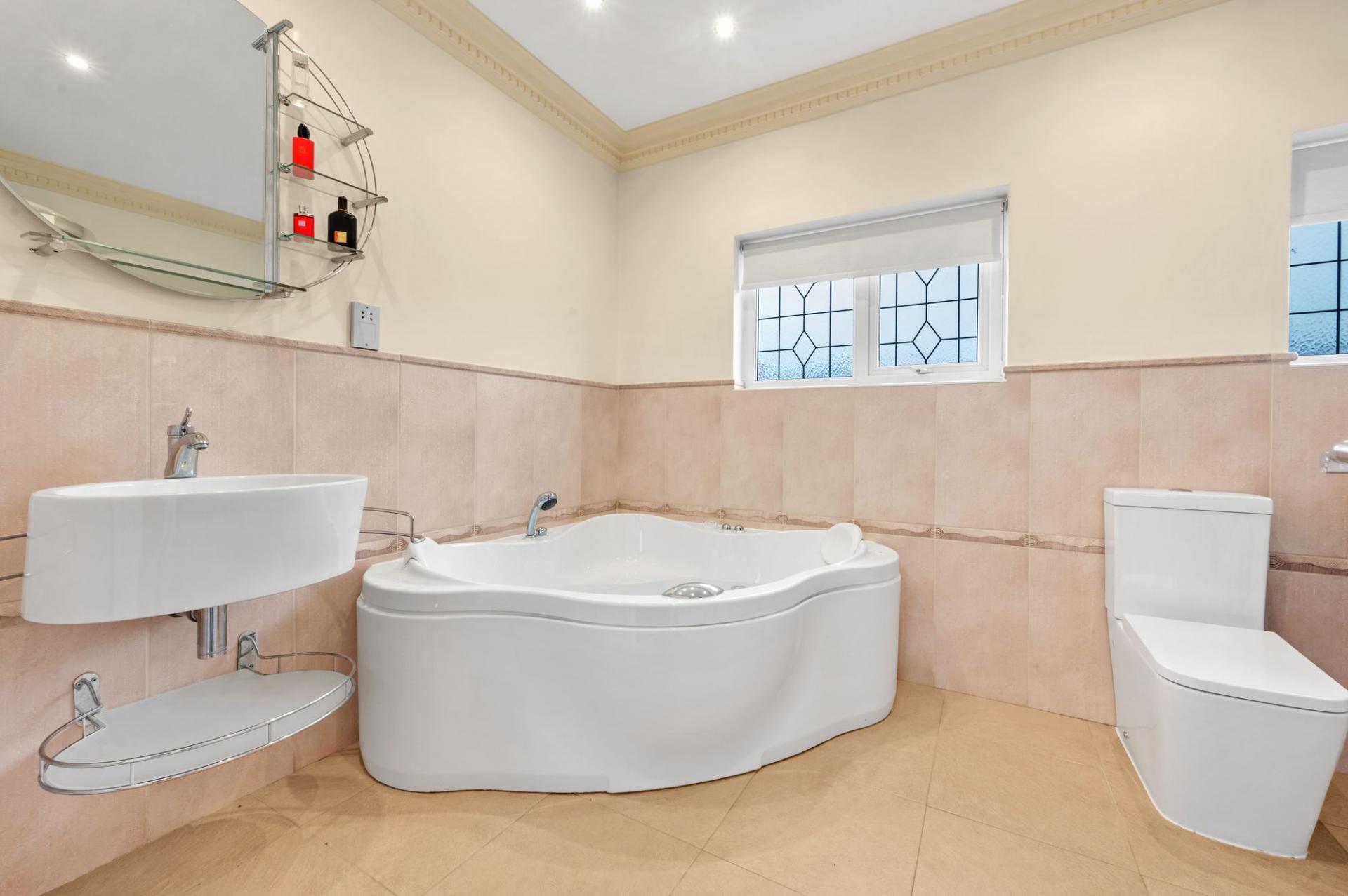 The wealth of accommodation extends to the first floor of the property, with five double bedrooms, three bathrooms in total ensuring ample facilities for the entire household. The main family bathroom is a sanctuary of indulgence, featuring a delightful corner jacuzzi bath and a feature steam shower that elevates the bathing experience to new heights. Two additional en-suites cater to the individual needs of each bedroom, enhancing privacy and convenience for all residents.