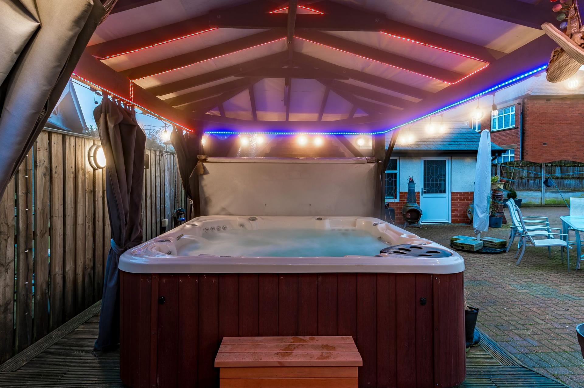 - Private enclosed rear garden perfect for children and entertaining, with enclosed hot tub and seating area