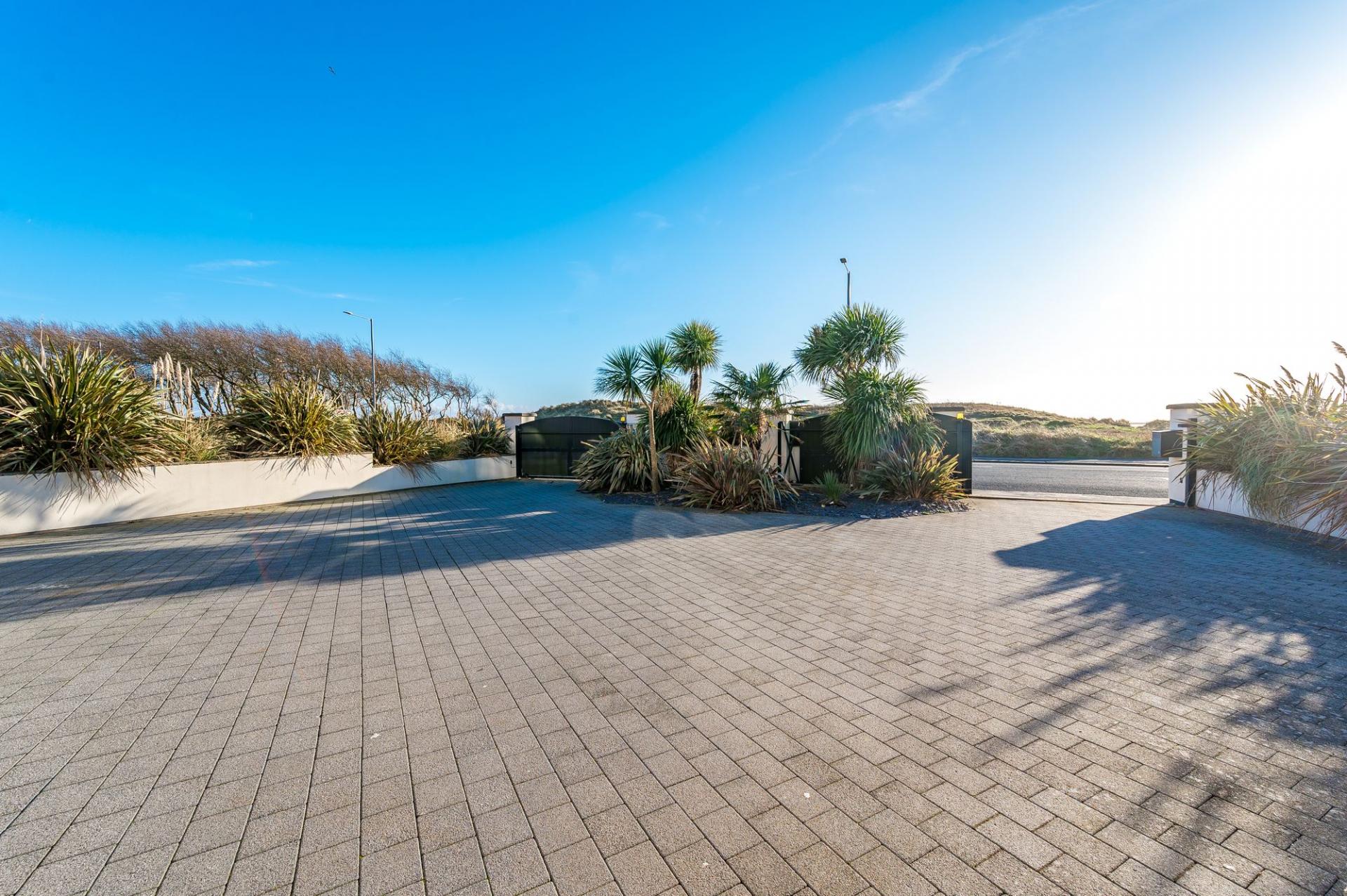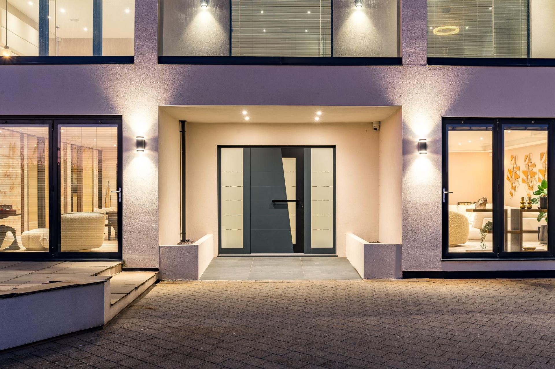 The in-and-out driveway, accessed via double electric gates, offers secure, ample parking, perfectly complementing the home’s commanding presence. Additionally, all bi-fold doors and windows throughout the home feature built-in privacy blinds, apart from the second-floor bedrooms, which have stylish shutter blinds for a sleek, modern finish.