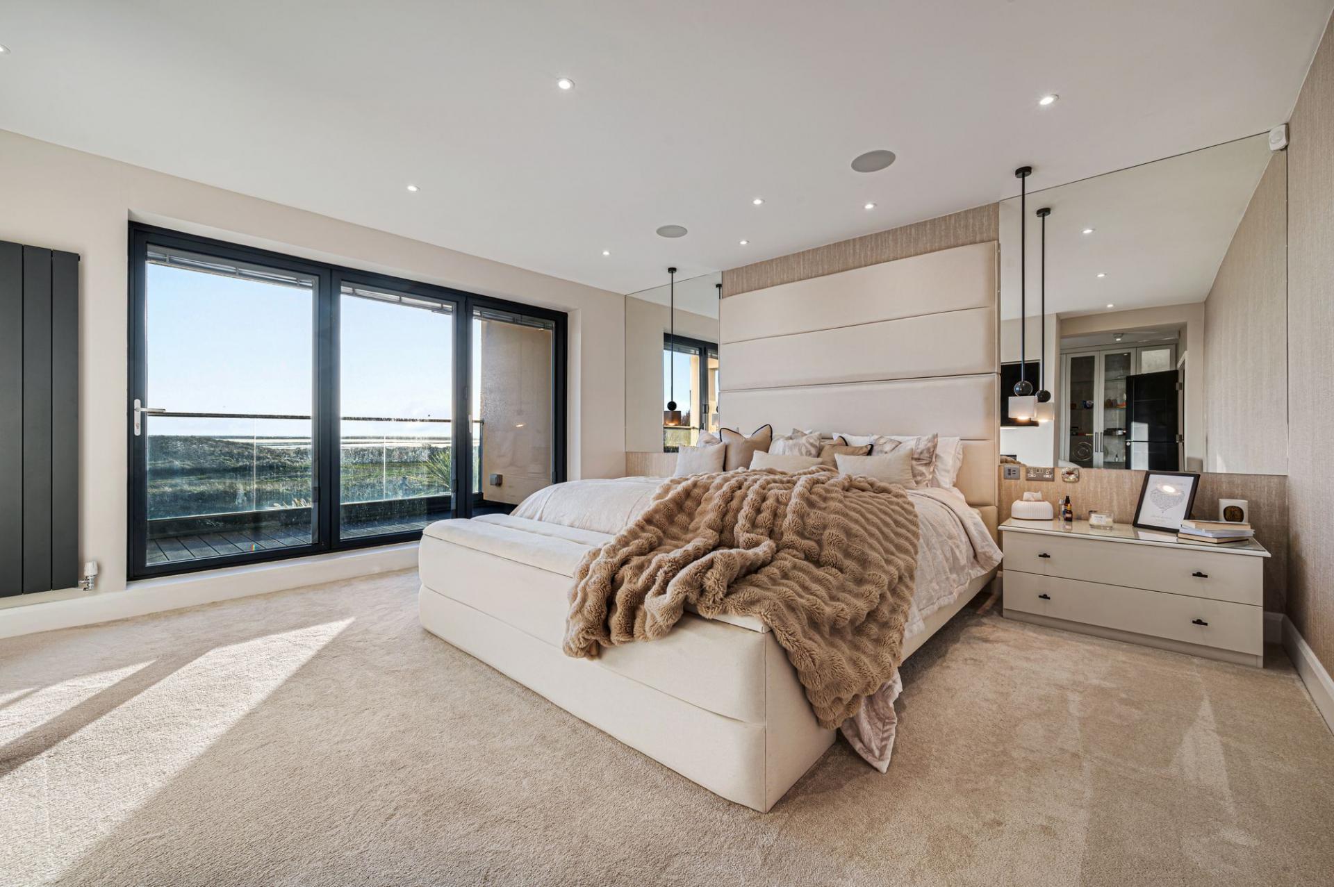First Floor: A Luxurious Master Suite & Spacious BedroomsAscending to the first floor, you’ll find three sumptuous en-suite bedrooms, including the unreal master suite—a truly spectacular private retreat. The master suite is an experience in itself, featuring a bespoke feature fire, a private snug, a dressing area, and a stunning four-piece en-suite including a state-of-the-art steam shower. Completing this sanctuary is direct balcony access via bi-fold doors, where you can wake up to uninterrupted panoramic sea views.