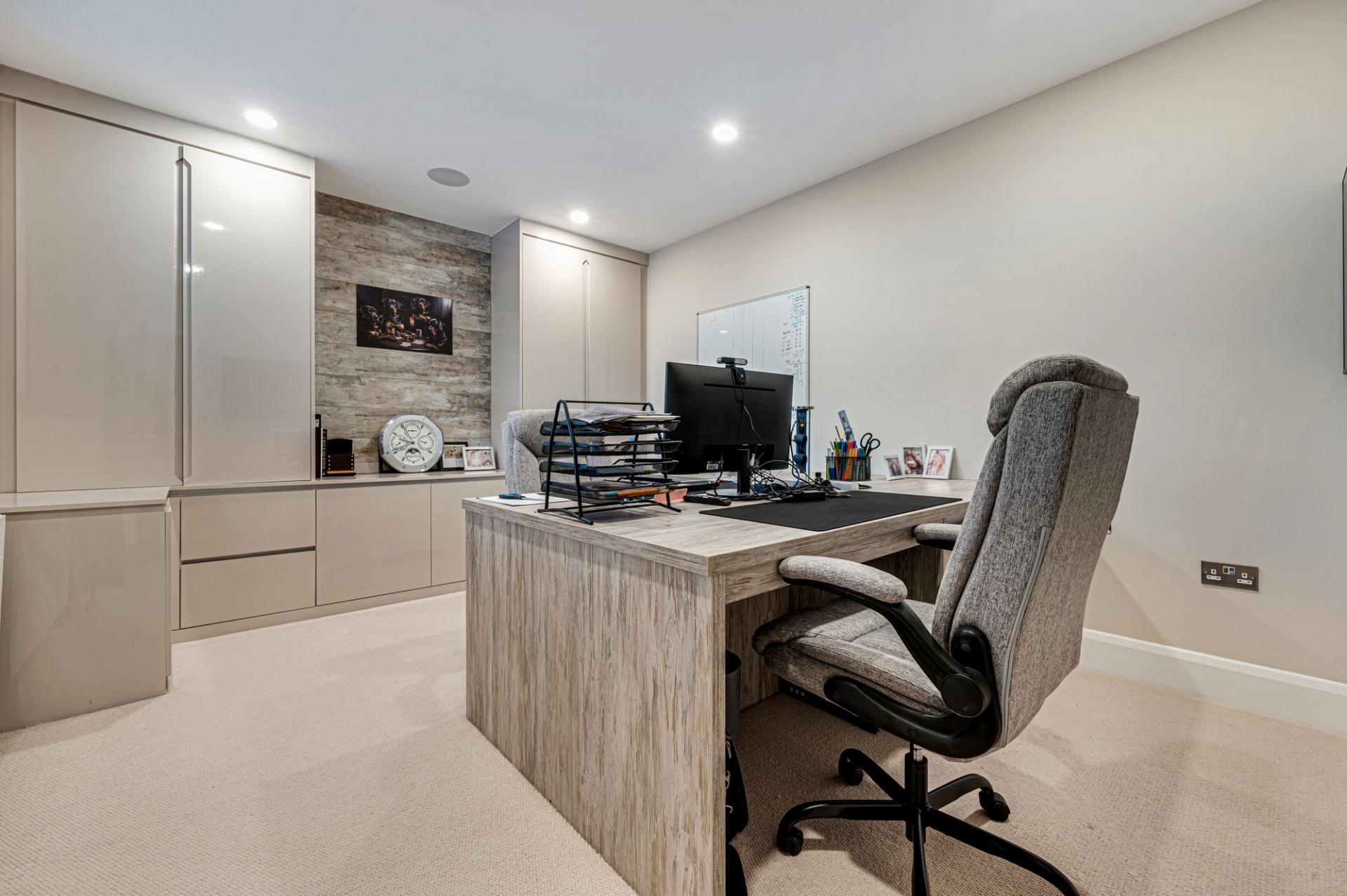 Two additional luxury en-suite bedrooms on this level offer generous proportions, bespoke fittings, and an abundance of natural light. A large home office provides an ideal workspace, ensuring this residence meets the needs of modern professional living.