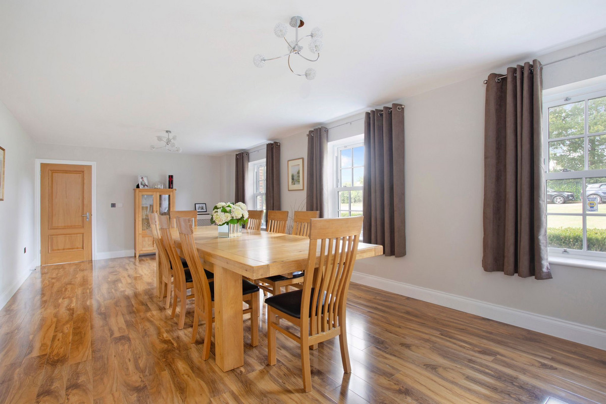 Venturing upstairs, the grand staircase leads to five well-appointed bedroom suites. Accomplishing both elegance and comfort, each bedroom comes equipped with its own en-suite, state of the art LED lighting and breath-taking views overlooking acres of country grounds.