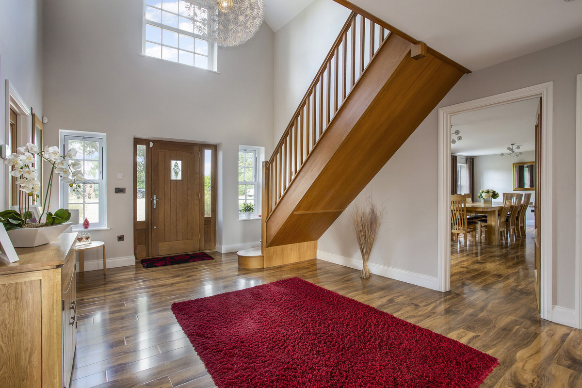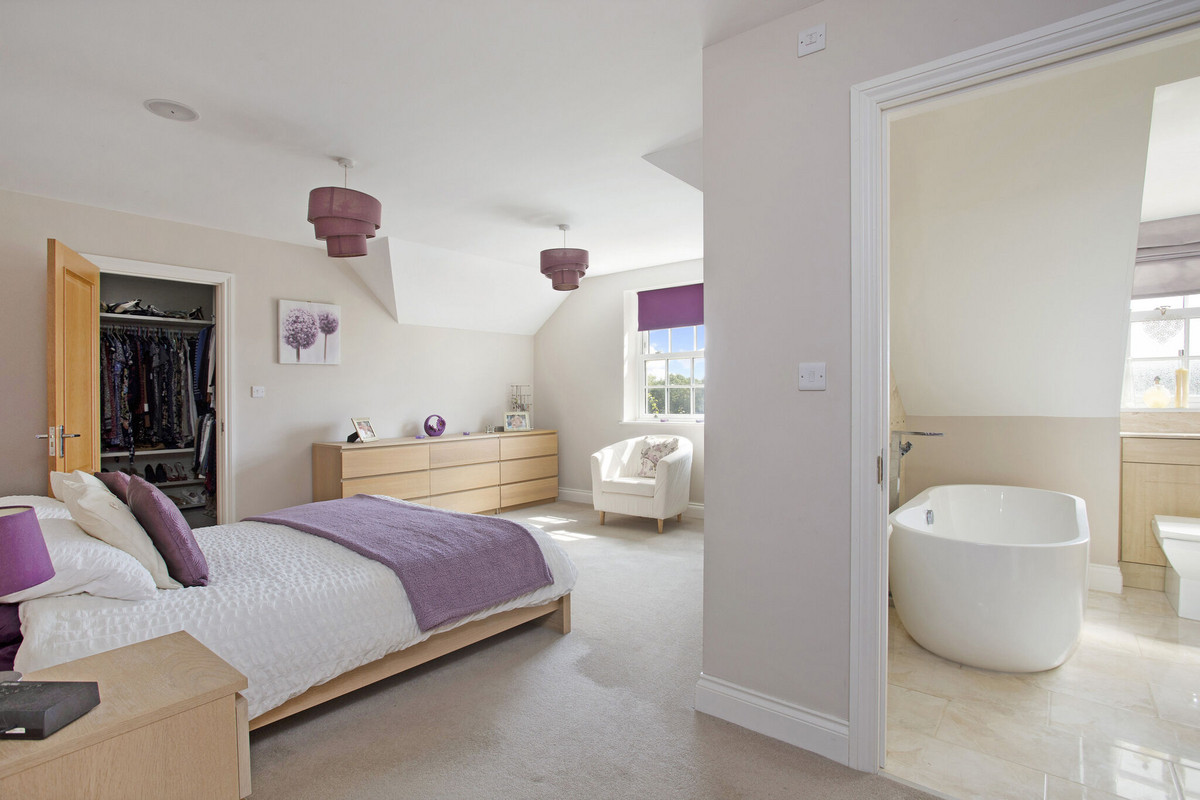 Venturing upstairs, the grand staircase leads to five well-appointed bedroom suites. Accomplishing both elegance and comfort, each bedroom comes equipped with its own en-suite, state of the art LED lighting and breath-taking views overlooking acres of country grounds.