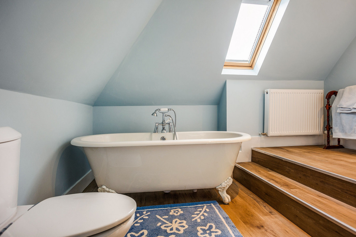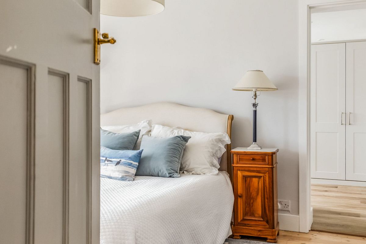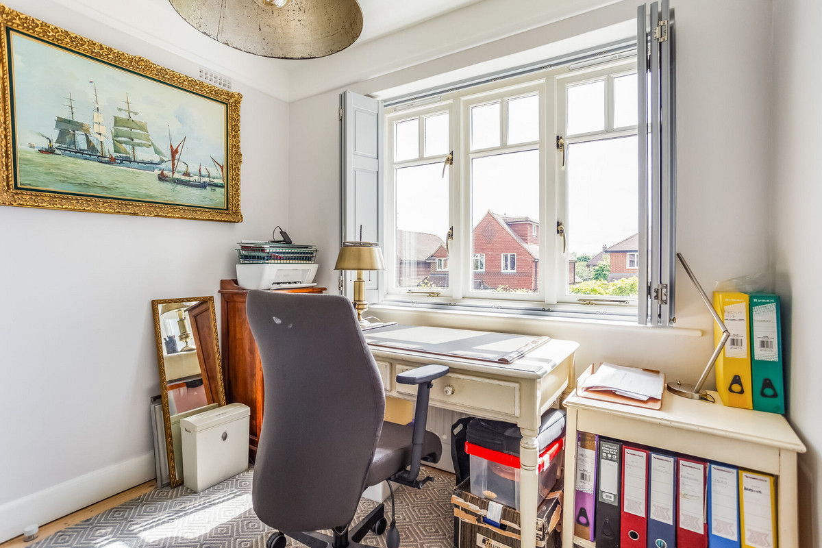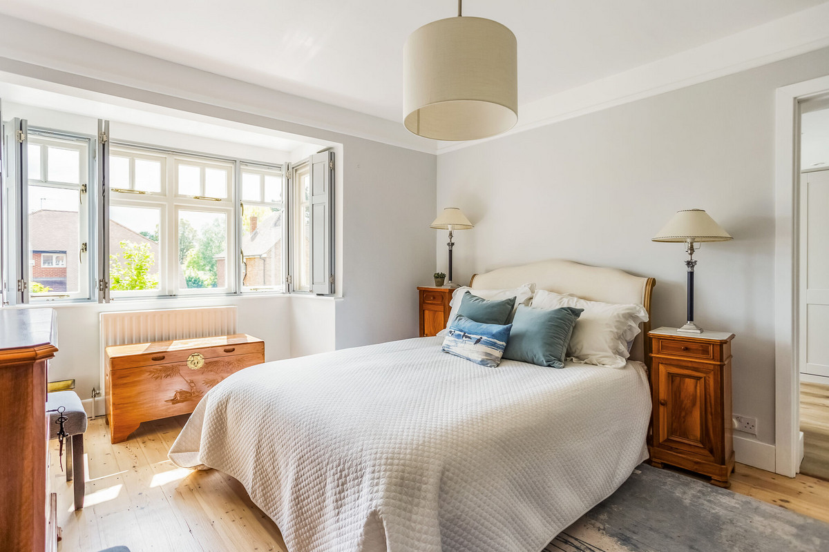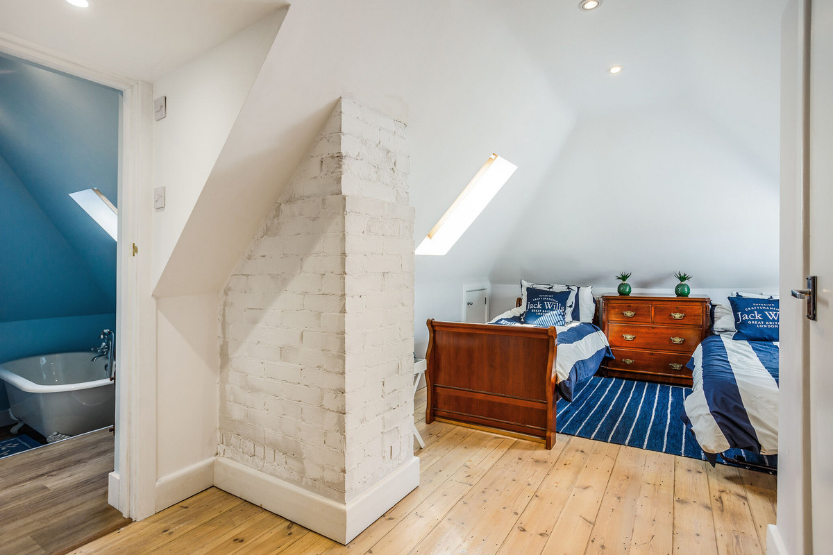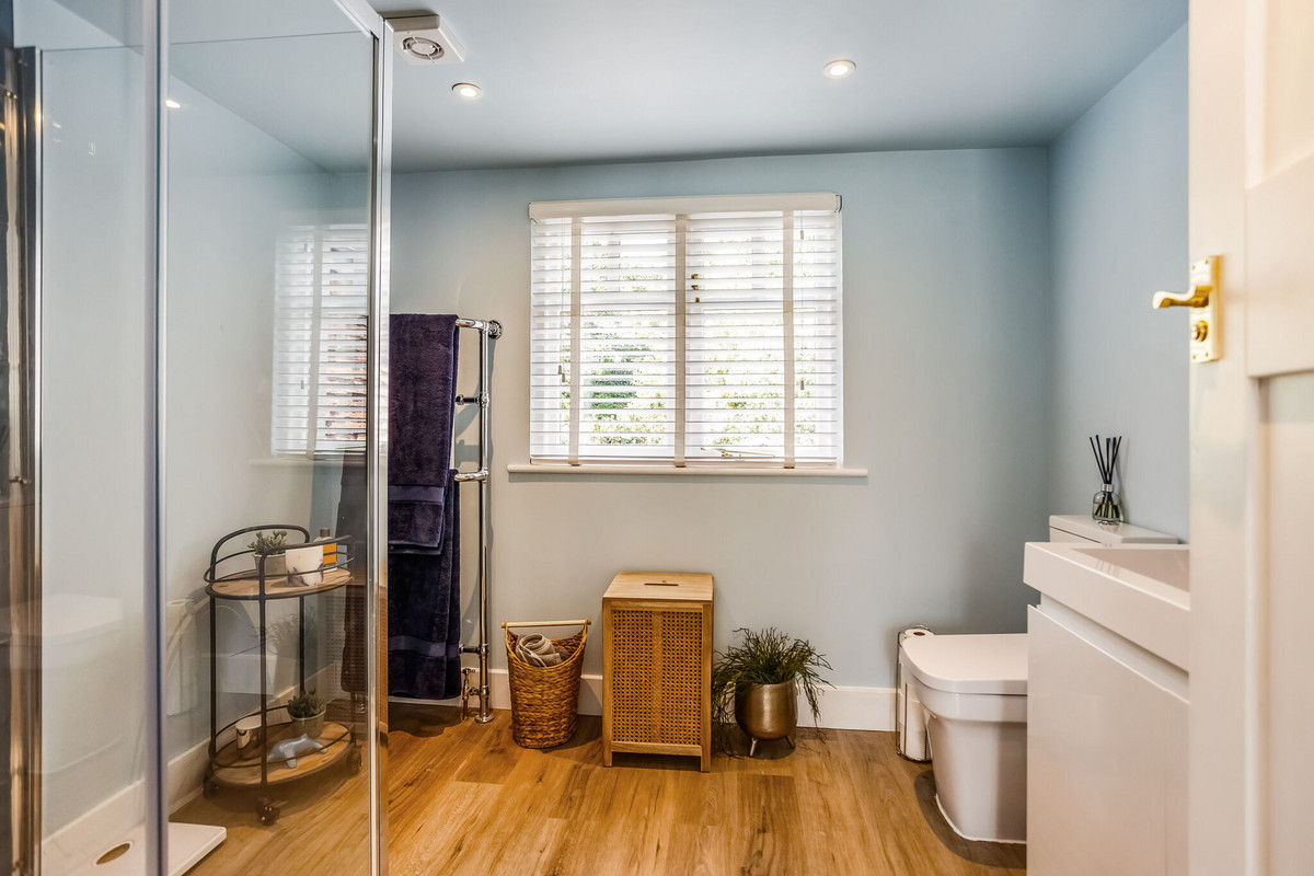 Second Floor - The second floor houses the versatile 5th bedroom, with its own ensuite for added convenience. Generously sized, accessed via a staircase and with views onto the garden, this space provides endless possibilities for use, whether as a guest suite, home office, or personal retreat.