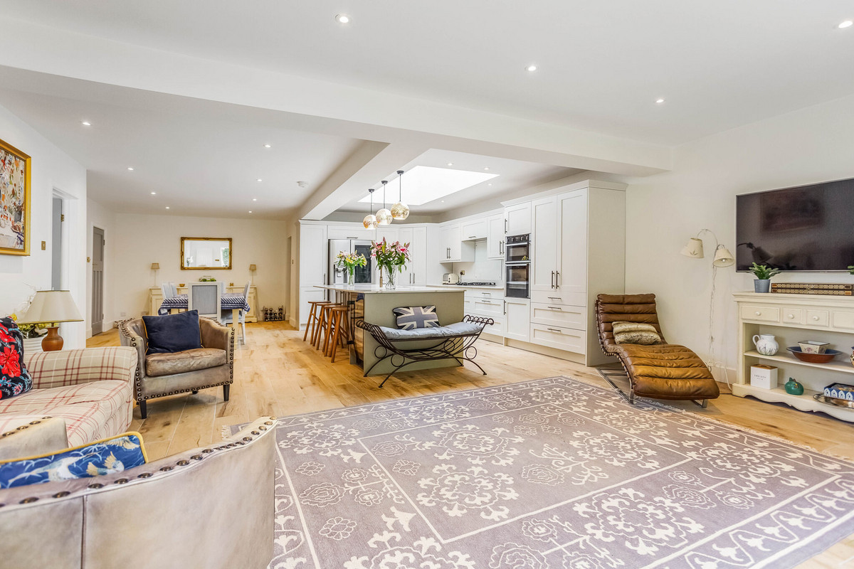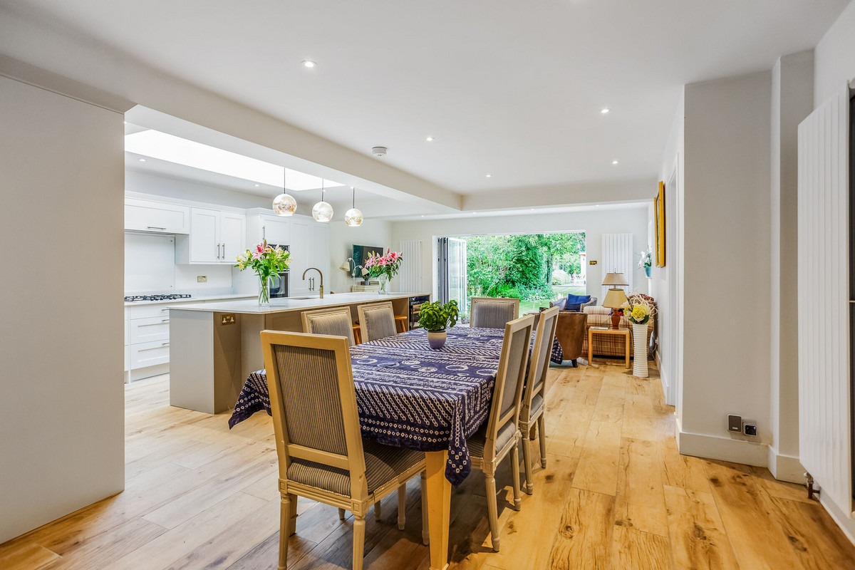 Fine and Country are proud to present Woodruff, a 1930’s detached family home which has been extended and modernised throughout. The property boasts 5 bedrooms, 4 bathrooms (3 ensuite), 2 reception rooms and a large open plan kitchen, dining and entertainment space, as well as a generously sized private garden with a swimming pool.