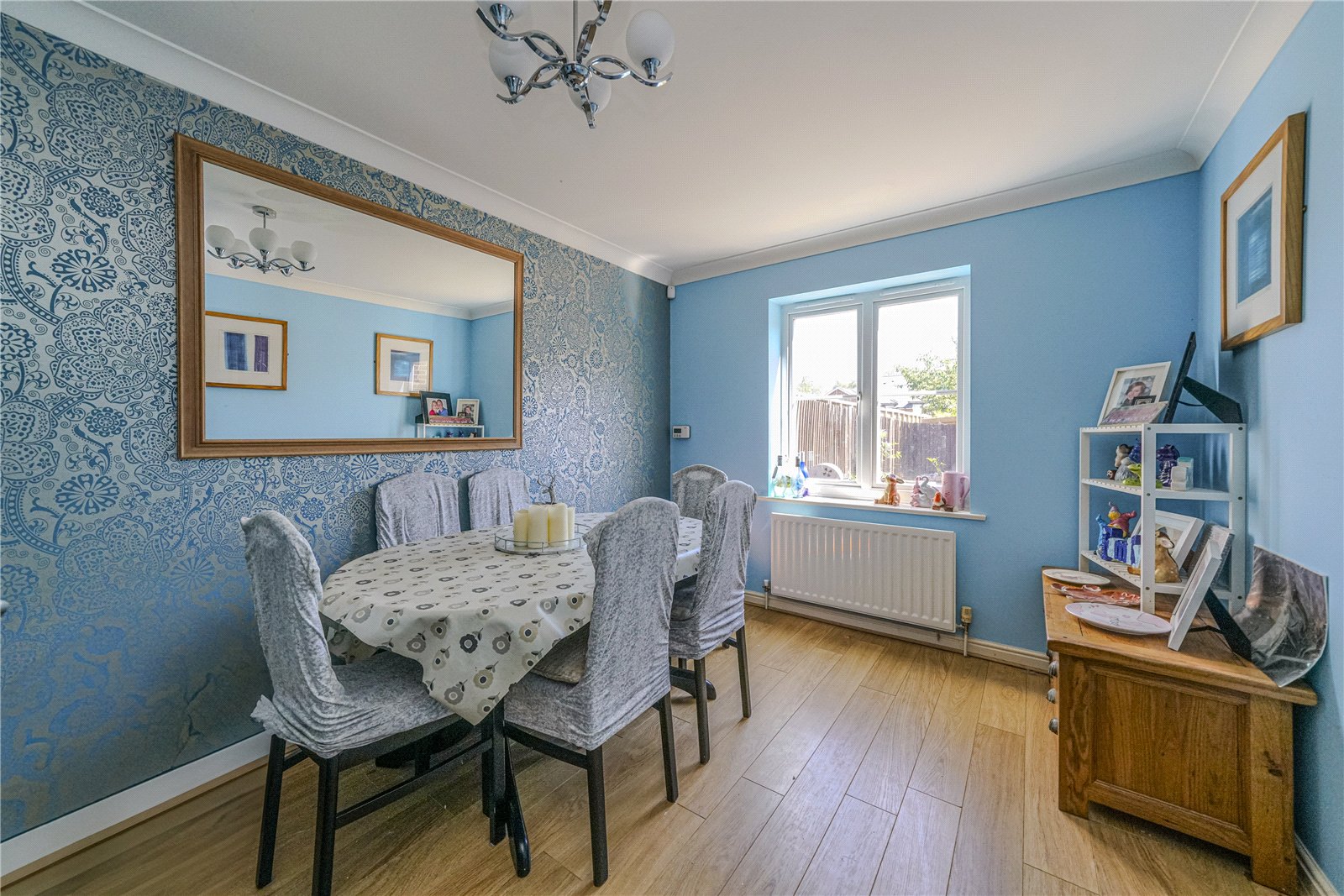 The well-appointed kitchen is bright and practical, with ample worktop and storage space, and is complemented by a separate utility room, keeping laundry and household tasks neatly tucked away. An integral garage provides secure off-street parking along with additional storage, enhancing everyday practicality.