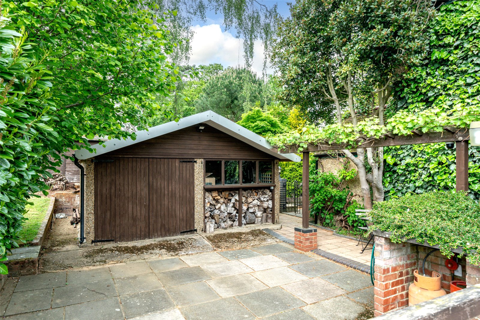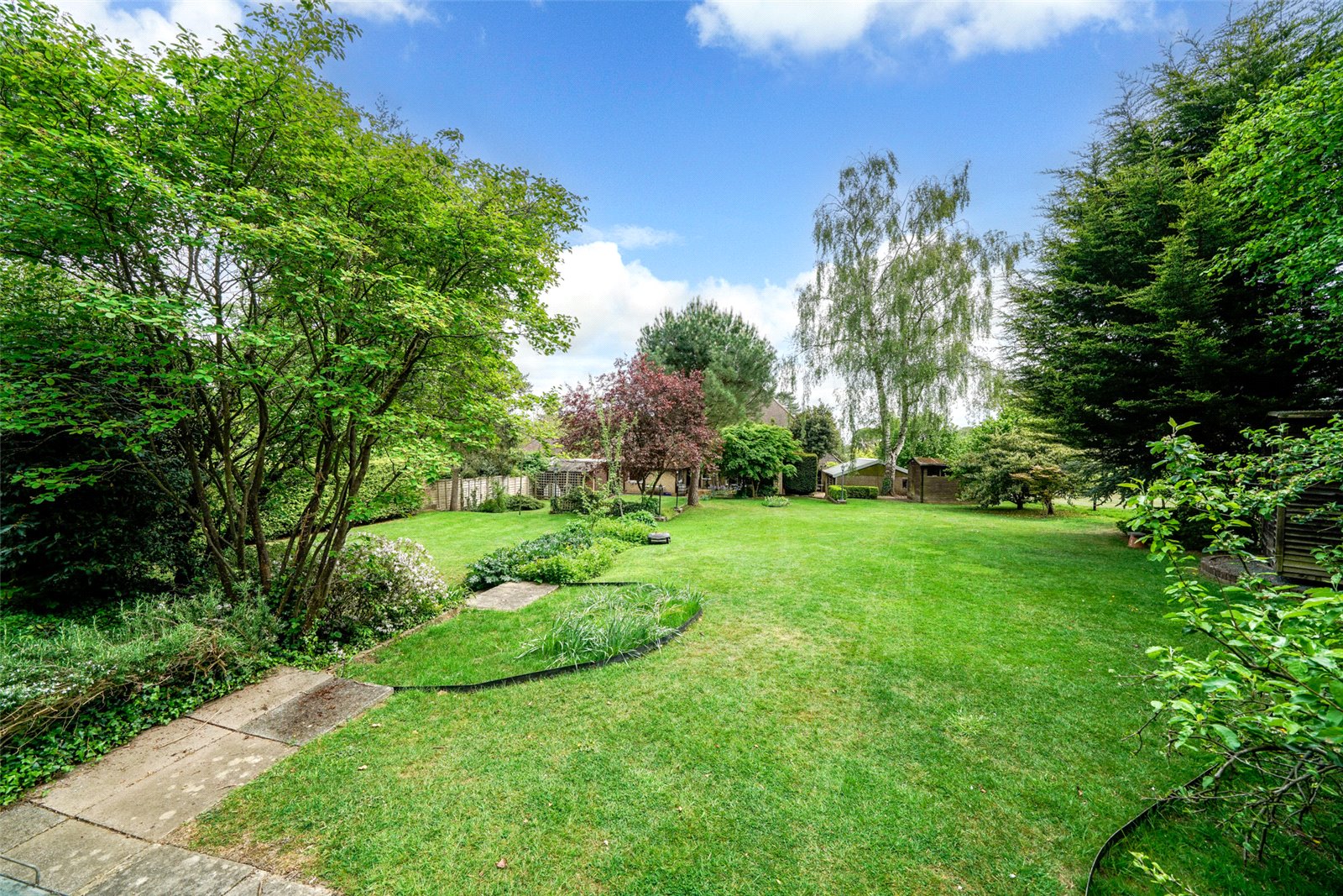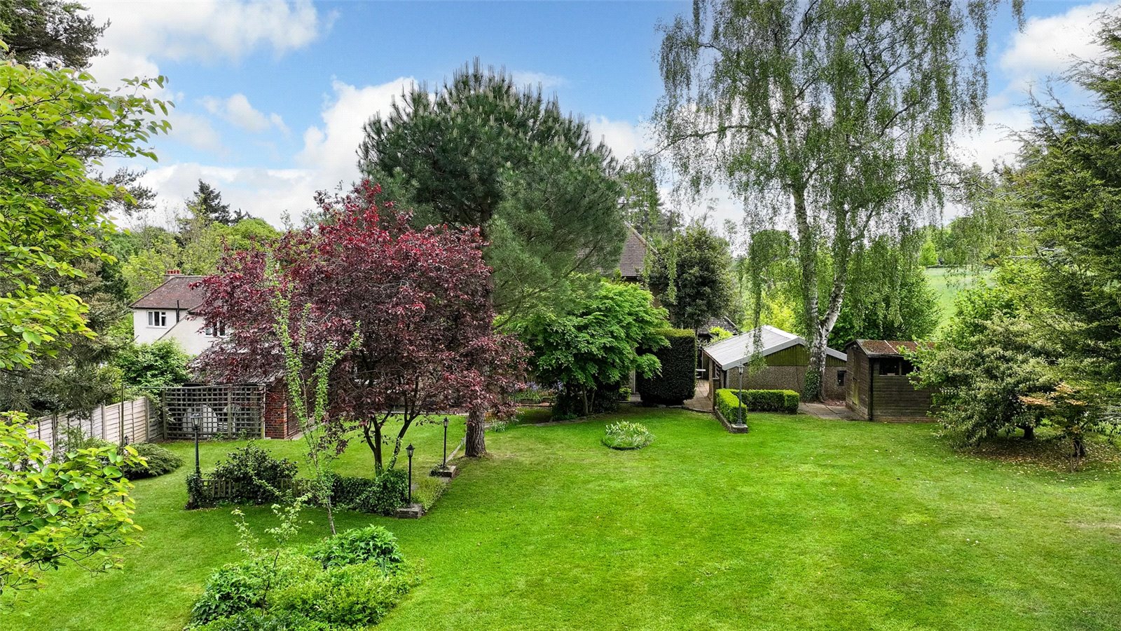 Crossfields House sits on a generous plot with beautifully landscaped gardens, offering a perfect mix of privacy, greenery, and space to entertain. A large terrace leads to a lush lawn framed by mature trees and countryside views. The detached garage provides scope for a gym, studio, or annexe, while the sweeping driveway ensures ample parking.