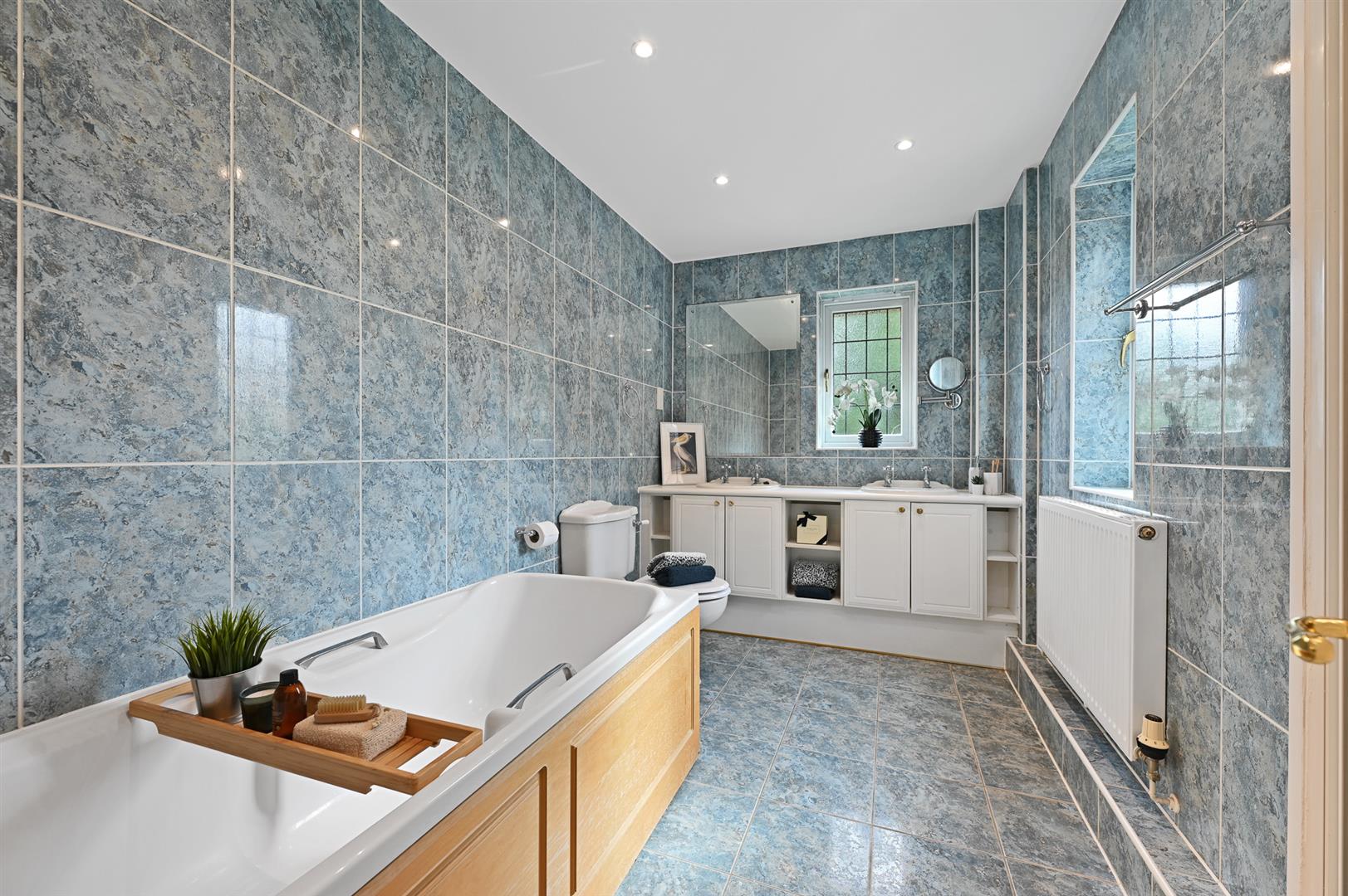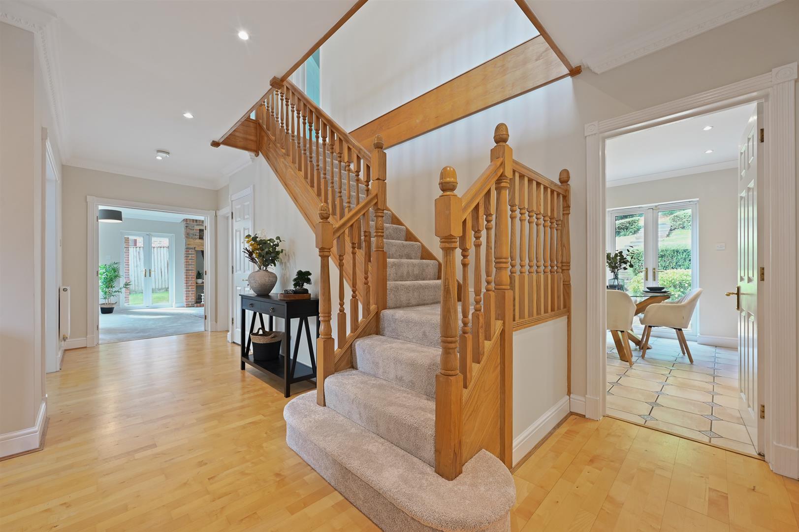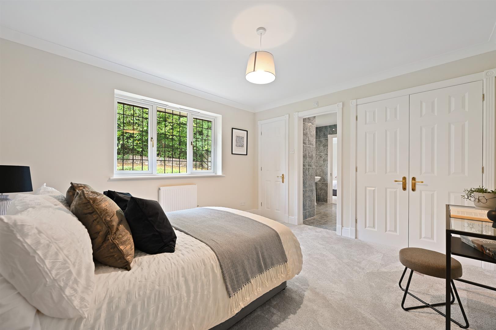 Upstairs, there are five generous bedrooms. The principal suite features a walk-in wardrobe and a luxury en-suite bathroom. Bedroom two benefits from its own en-suite shower room, while bedrooms three and four share a Jack-and-Jill en suite. A family bathroom completes the accommodation.