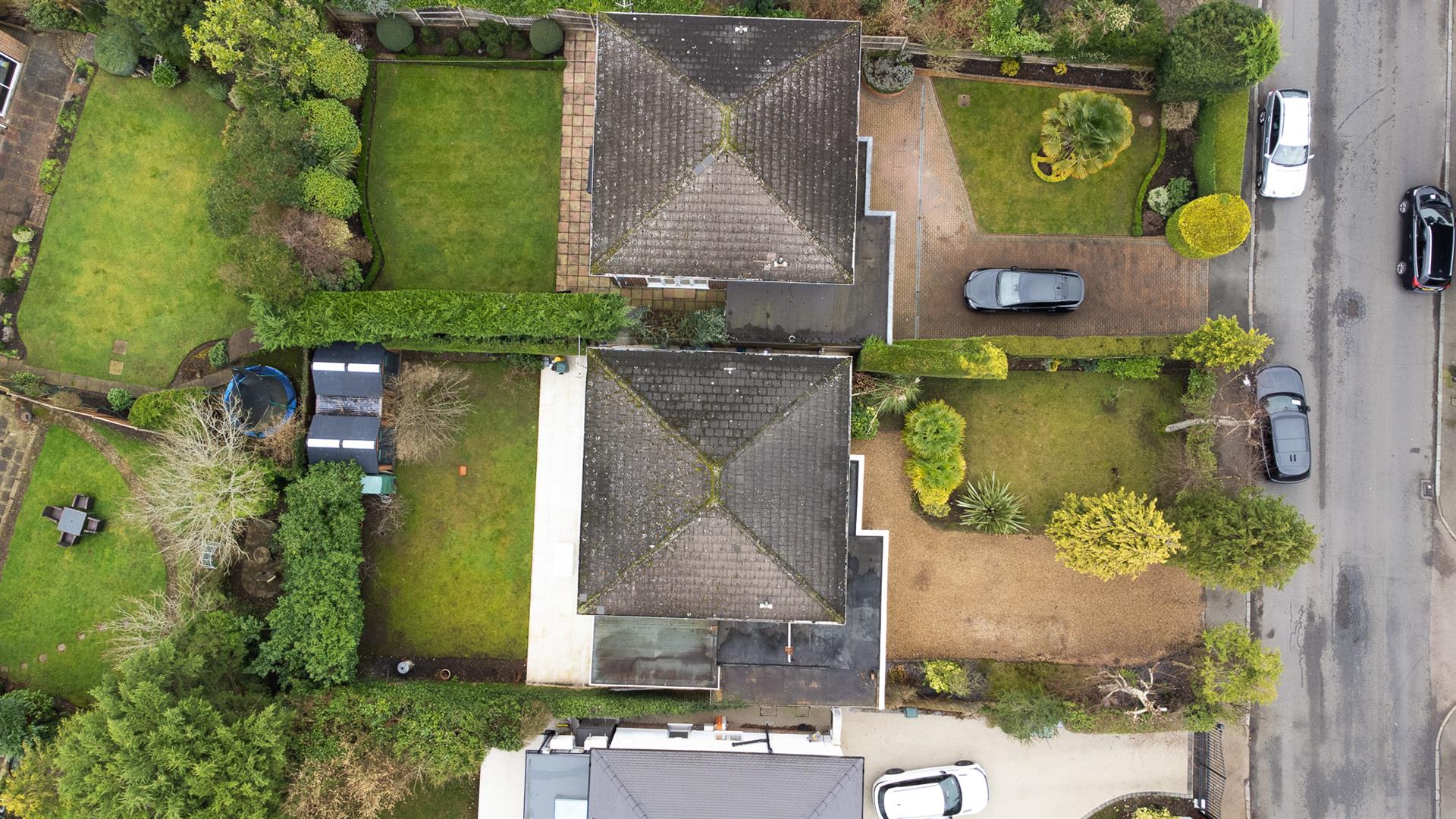 Externally, the property is approached via a shingle driveway, providing ample off-street parking. The meticulously landscaped rear garden features a patio, lush lawn, mature shrubs, and storage sheds.