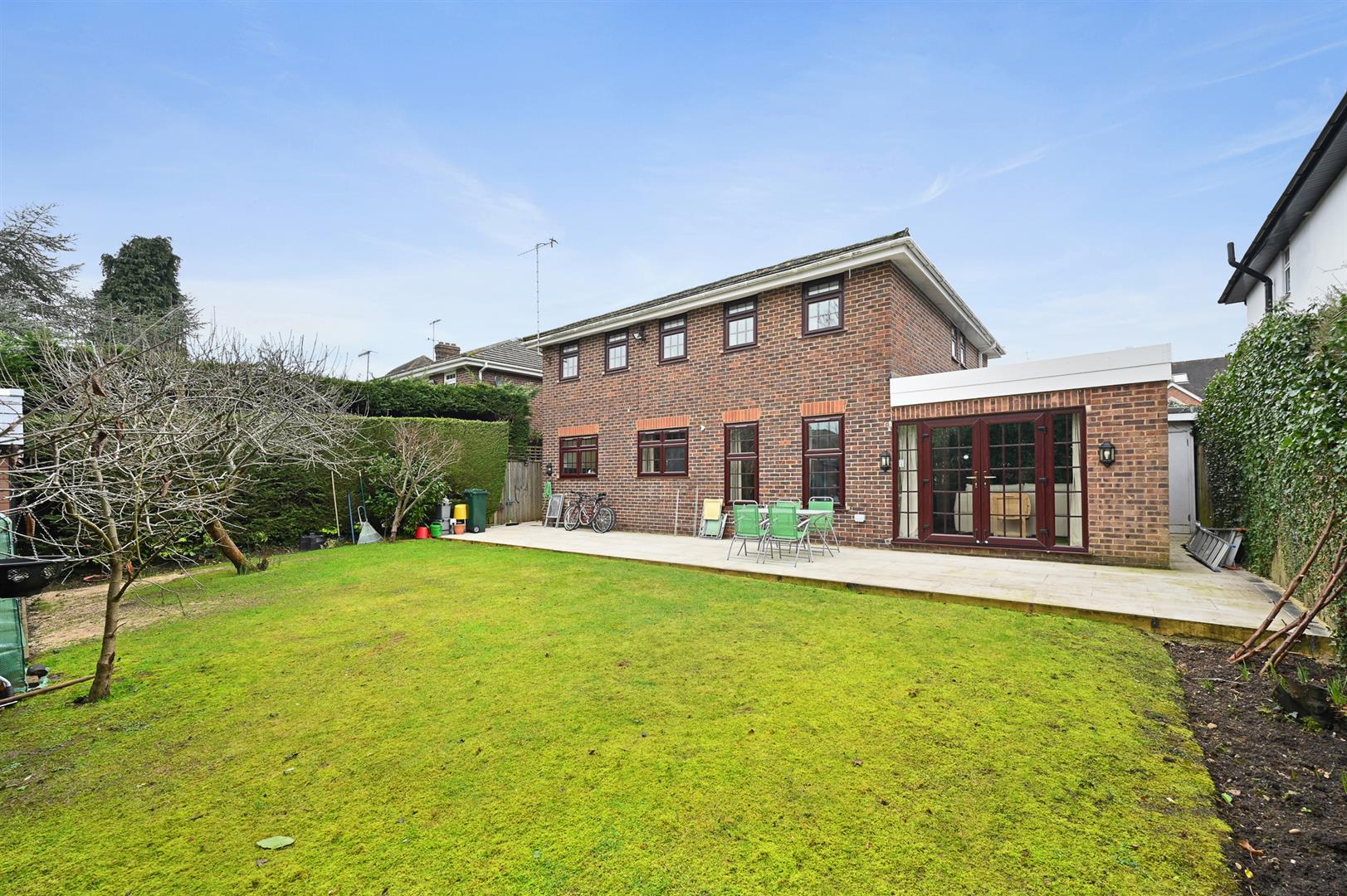 Upstairs, all five bedrooms benefit from fitted wardrobes, with the principal bedroom enjoying a private en-suite and dressing area. A contemporary family shower room serves the remaining bedrooms.