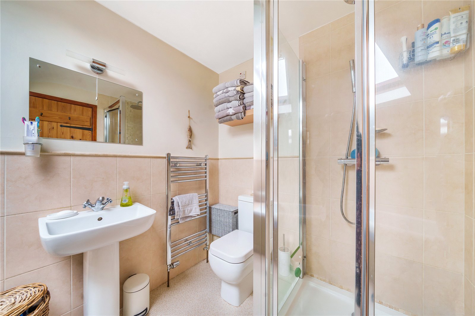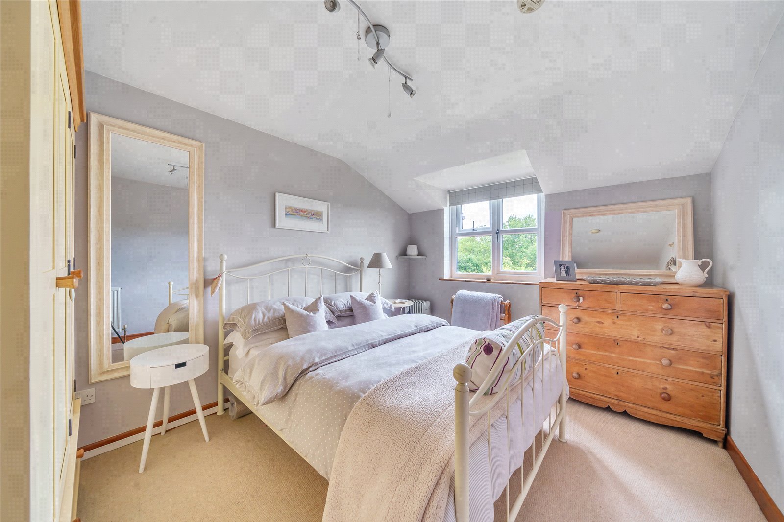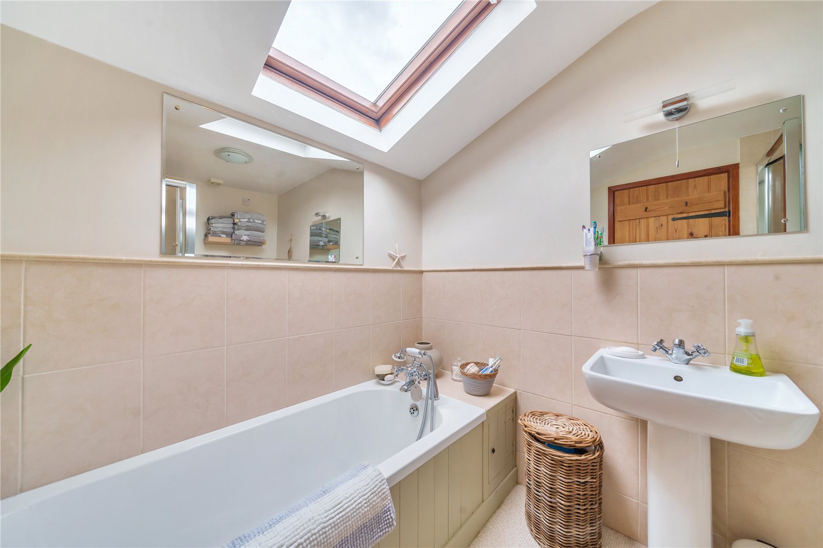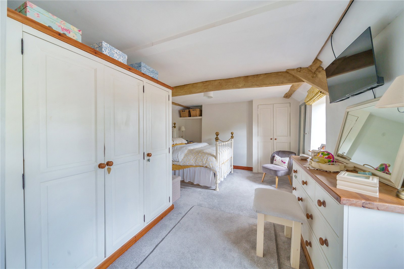 The staircase provides access to the landing with exposed timbers, and Velux. To the right are two good sized bedrooms, both with built in cupboards, windows to the front and the master benefitting from exposed timbers. A further set of stairs take you to a third double bedroom with window overlooking the pretty gardens, and family bathroom comprising panelled bath, shower cubicle with tiled splashback, wash hand basin, wc and Velux.