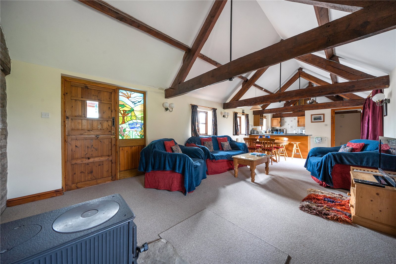 The property is accessed via a gated driveway that leads to a spacious parking area in the farmyard, which includes an electric charging point. As you enter, on your right, you'll find the re-roofed stone barn. This building has planning consent for a holiday let and offers excellent potential for conversion, subject to the relevant planning permissions. Attached to the stone barn is a separate room, currently used as utility/freezer room. Moving down the yard, to the left, are two craft units, providing ample space with sinks and storerooms, ideal for creative use. Just beyond the craft units is the double garage, which offers space for two vehicles and includes an electric charging point. A side door leads into the shower facilities, toilets, and a workshop area. There's also a staircase that provides access to a useful room, which could serve a variety of purposes. Further along from the annexe is a steel portal barn built in 2020 with roller shutters, double doors, and pedestri...